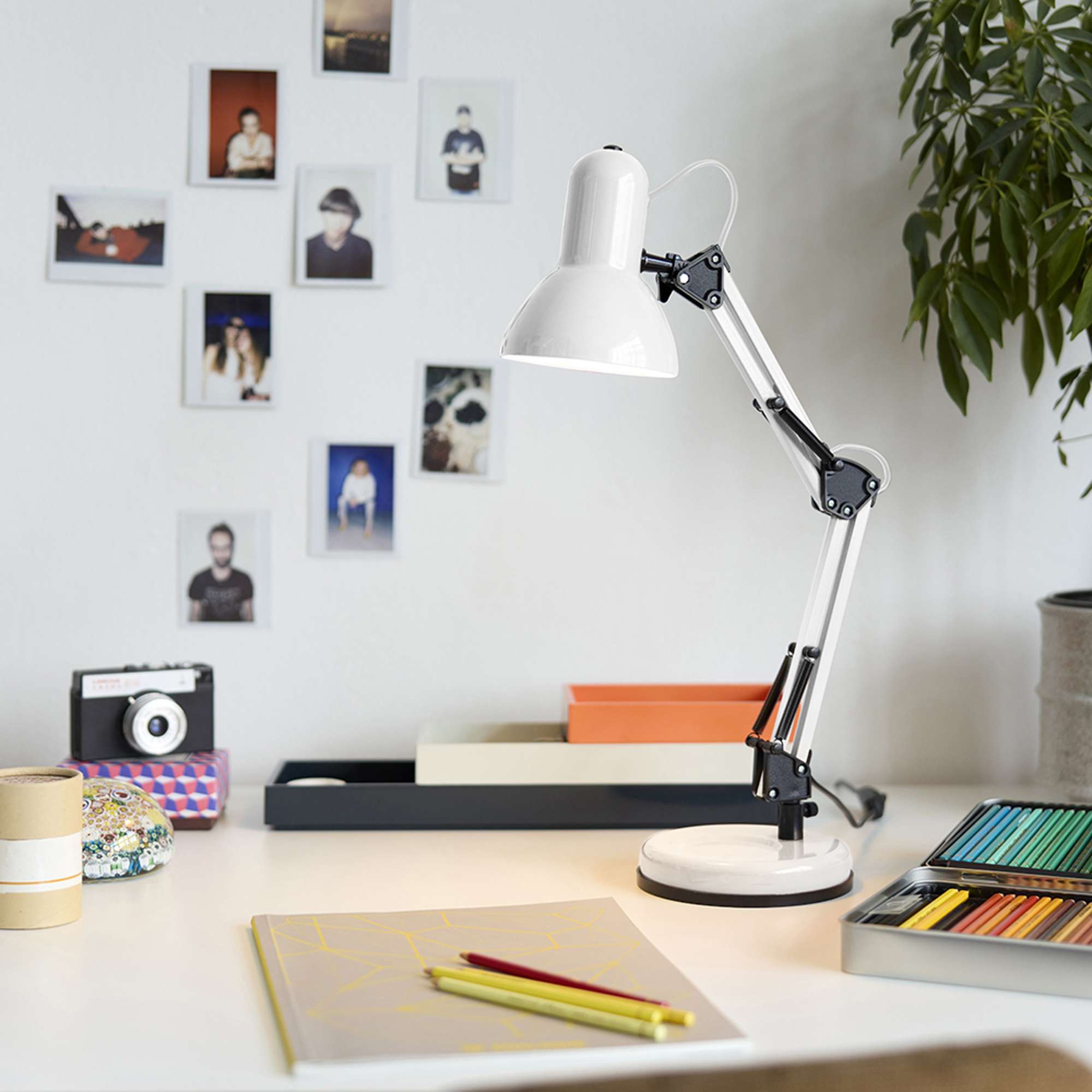 Med sit elegante udtryk tilføjer Alba et moderne touch til din indretning. Den justerbare arm gør det muligt at rette lyset præcist, hvor du har brug for det, hvilket gør den uundgåelig for kreative sjæle og studerende, der har brug for optimal belysning til deres projekter.