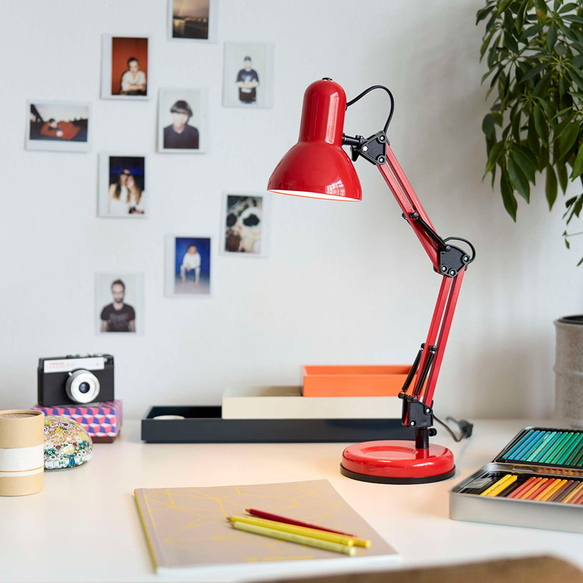 Alba Arkitektlampe i rød er den perfekte tilføjelse til dit hjem, hvis du ønsker at kombinere stil med funktionalitet. Med en højde på 53 cm og en elegant bund på Ø15,8 cm, står denne lampe stabilt og ser fantastisk ud på dit skrivebord eller i stuen. Den iøjnefaldende røde farve tilføjer et friskt pust til ethvert rum og gør den til et blikfang, der vil imponere dine gæster.