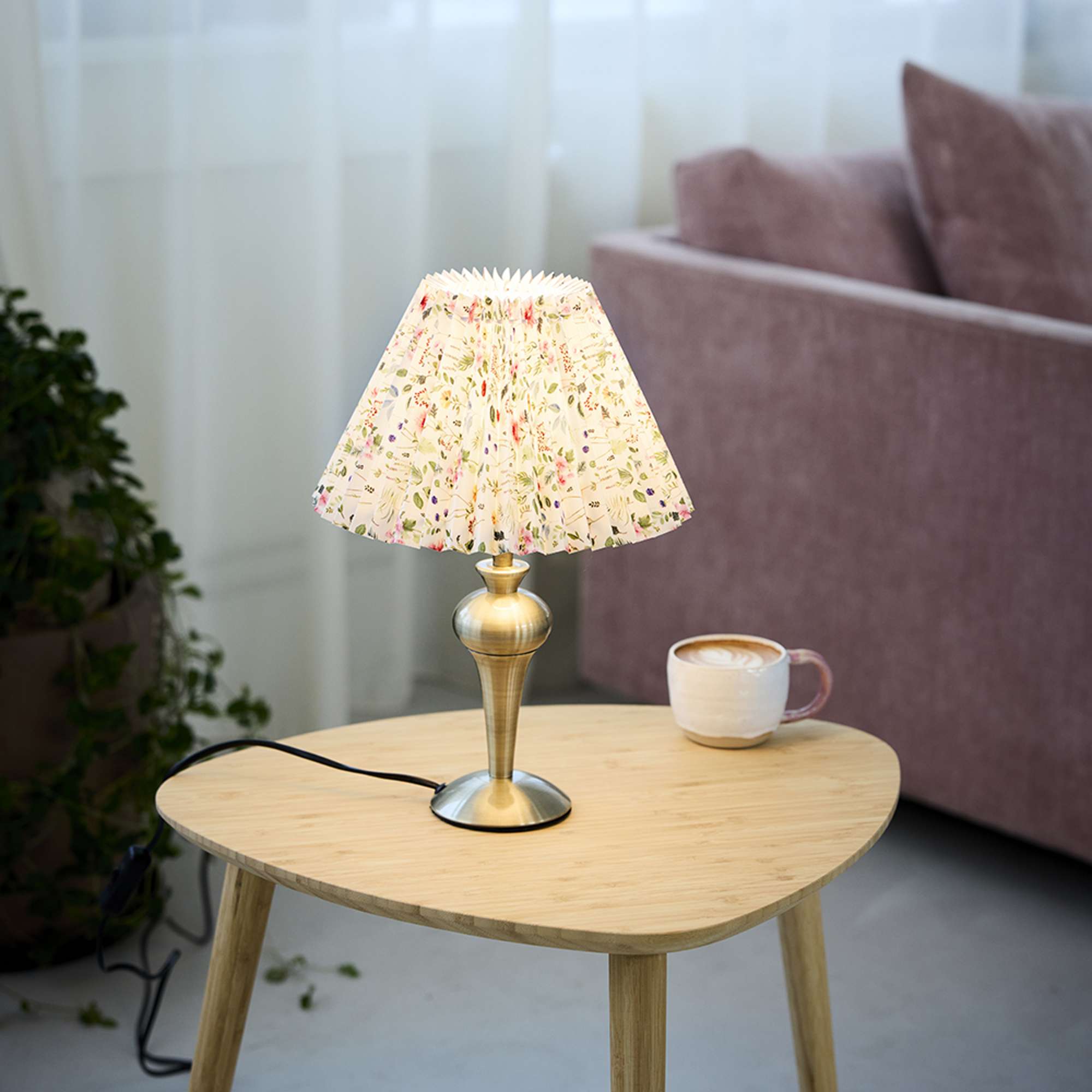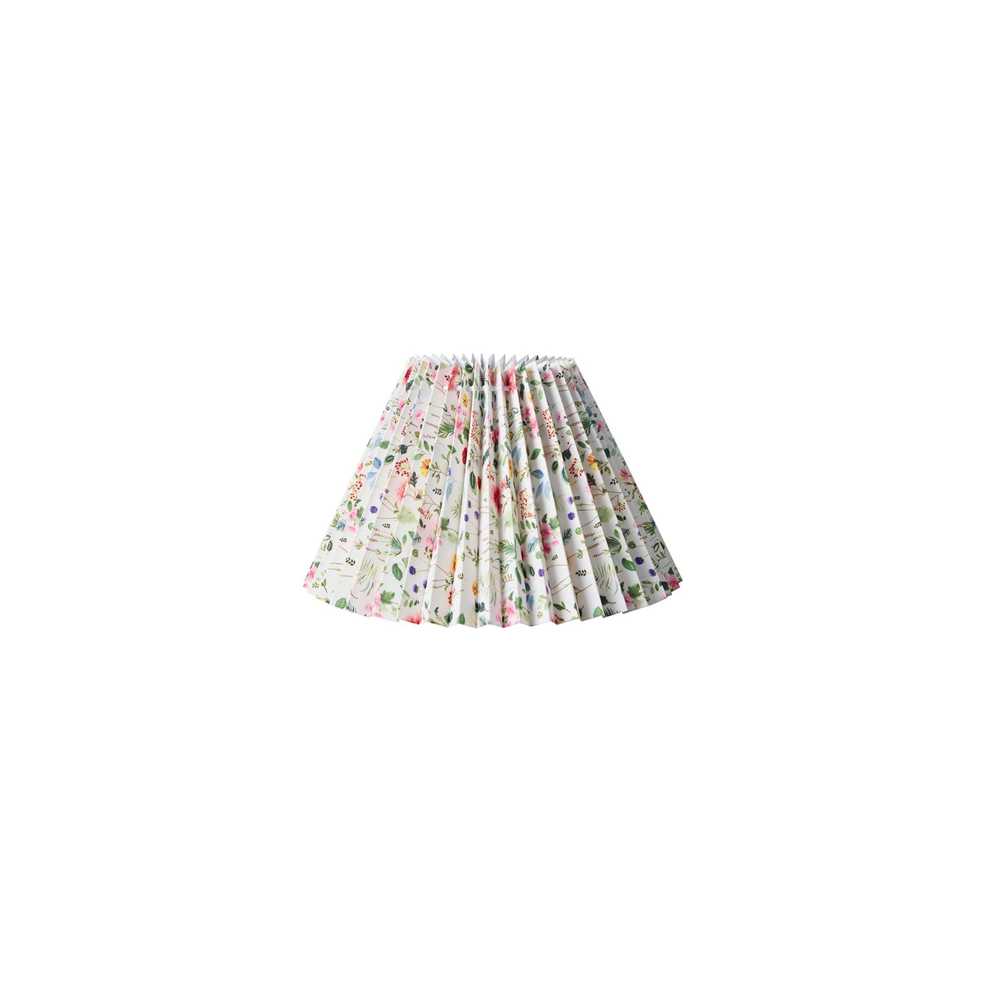 Blomster Eng Hacienda Plisseskærm fra NIELSEN LIGHT er den perfekte tilføjelse til dit hjem, hvis du ønsker at skabe en varm og indbydende atmosfære. Denne smukke lampeskærm er designet med et delikat blomsterdesign i lyserød, gul og lilla, der står i smuk kontrast til de grønne blade på en hvid baggrund. Den vil med garanti tiltrække opmærksomhed og give dit rum et friskt pust.