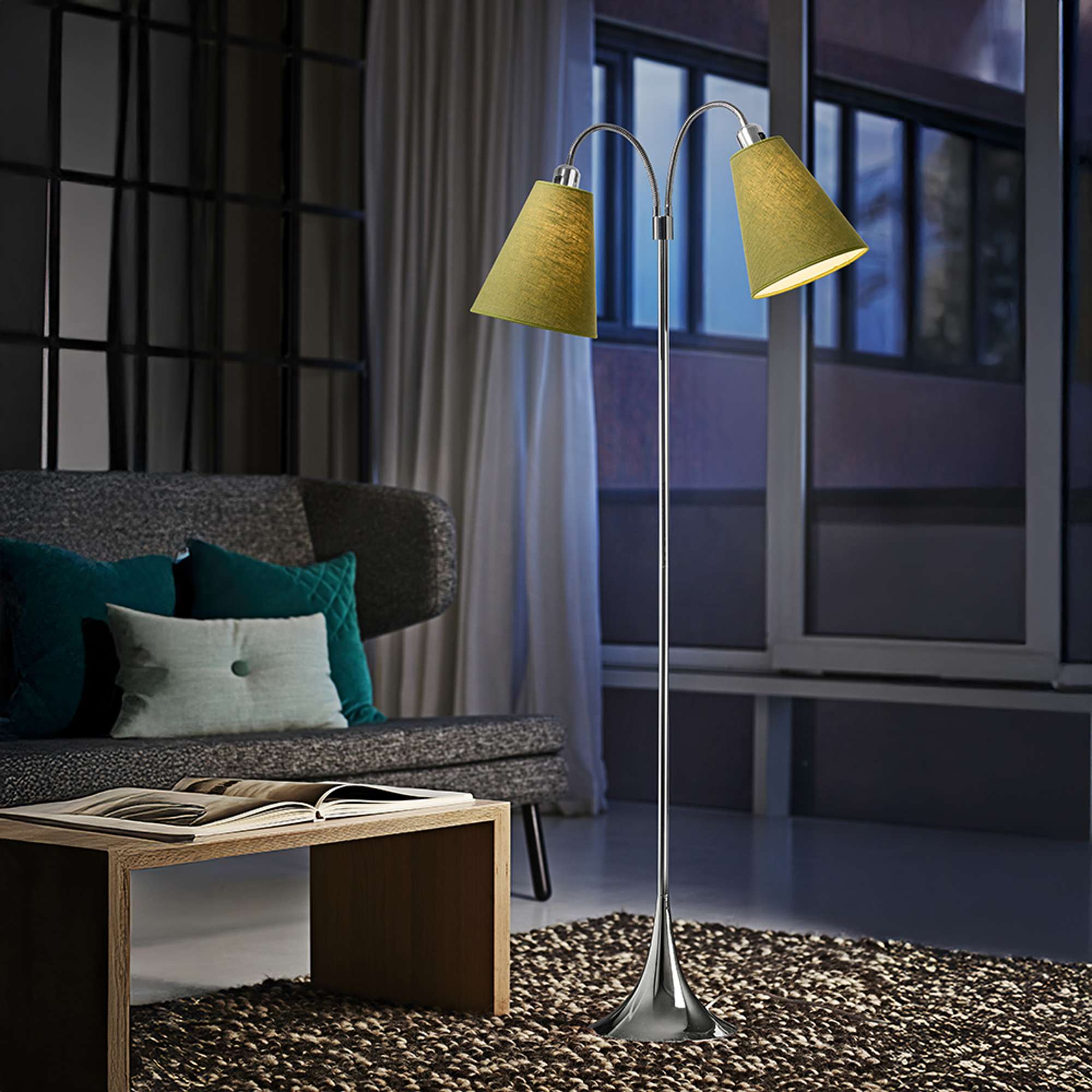 Fodgænger Gulvlampe Krom m/lys armygrønne lampeskærme
