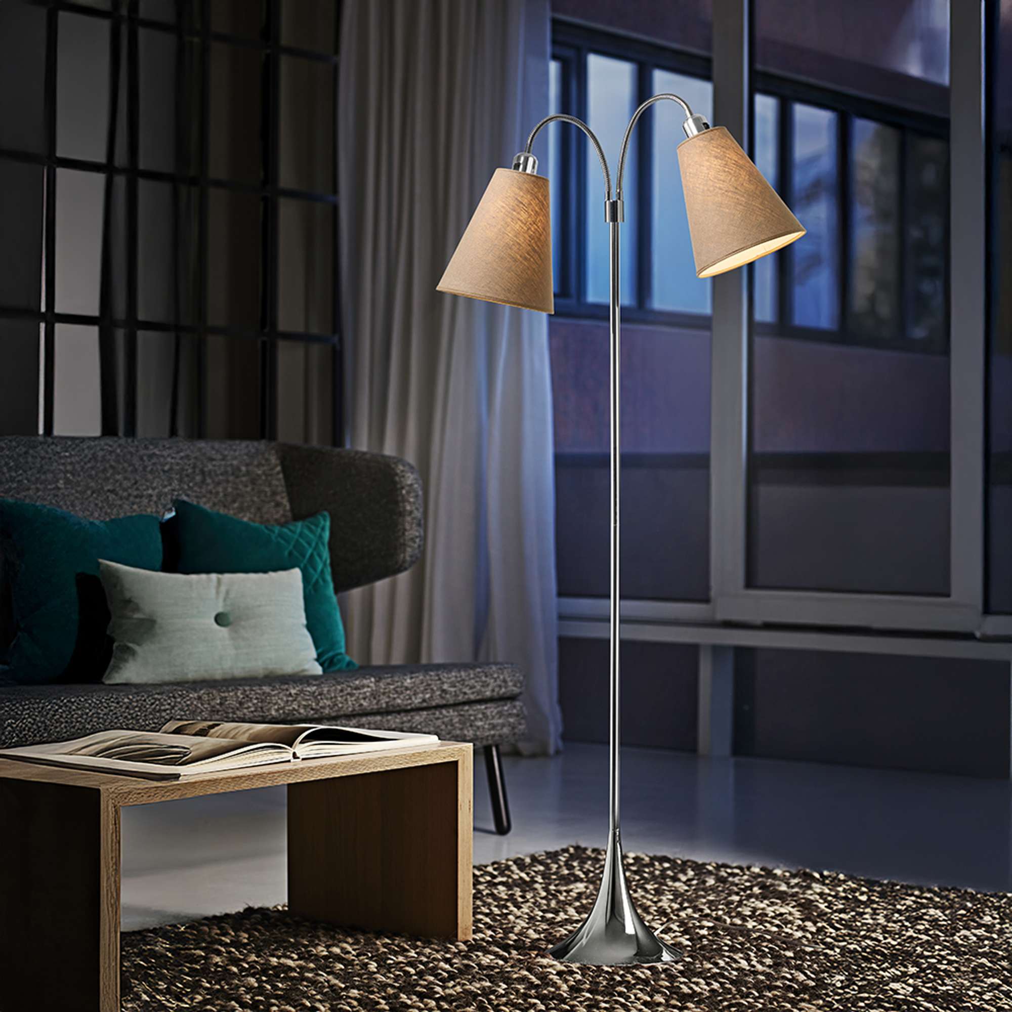 Fodgænger Gulvlampe Krom m/lys nougat lampeskærme