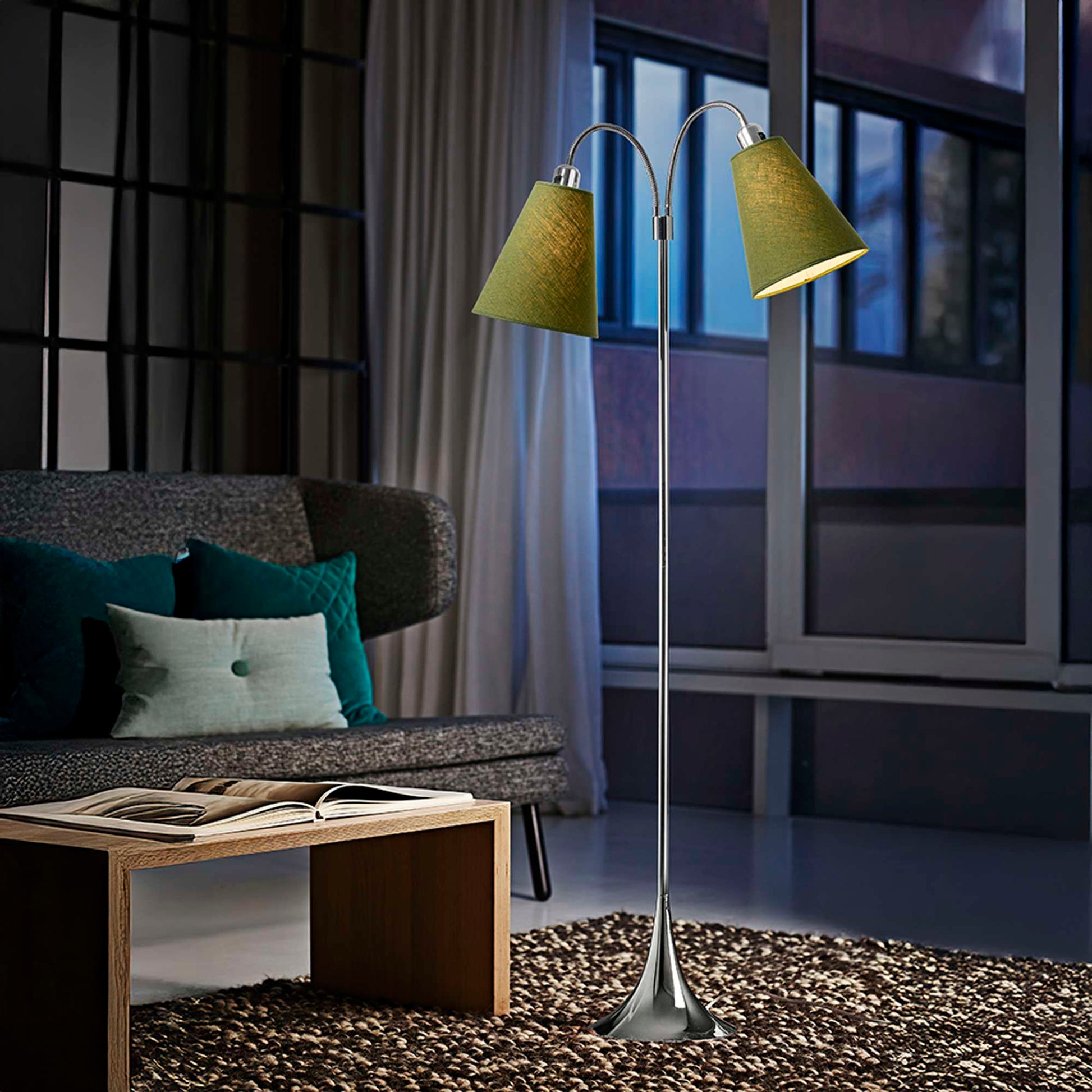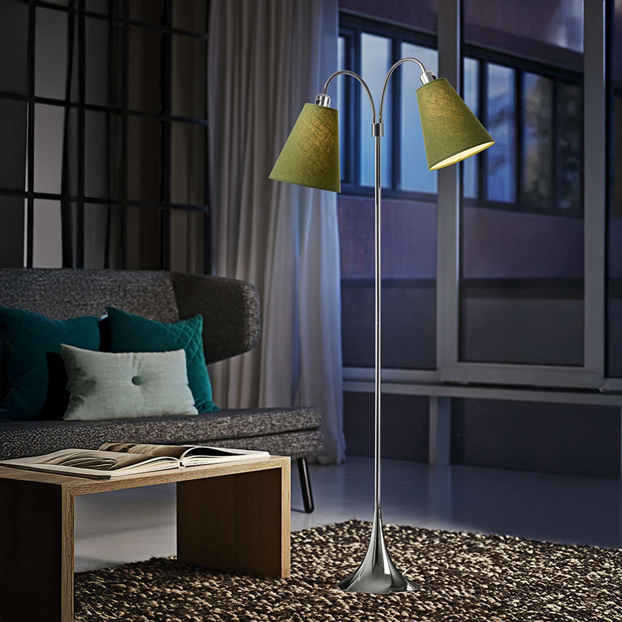 Fodgænger Gulvlampe Krom m/mørk armygrønne lampeskærme