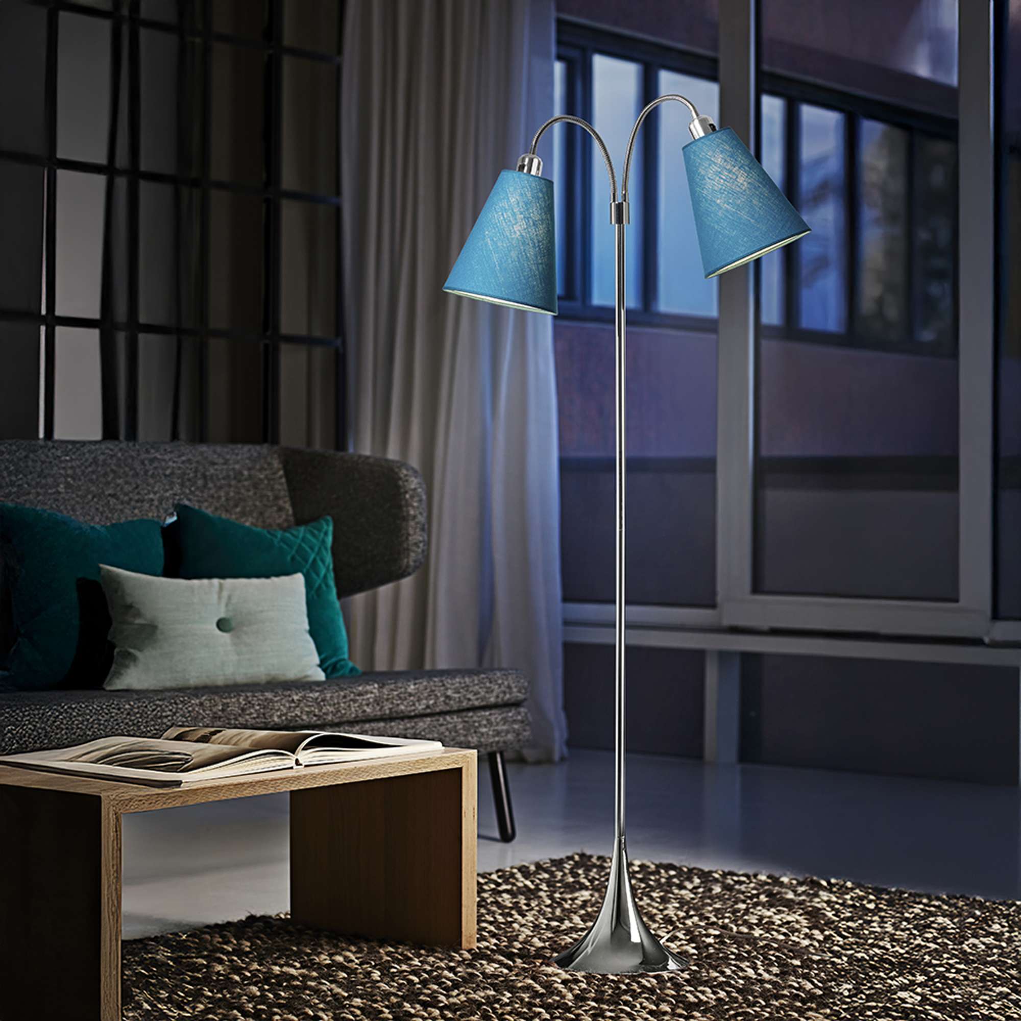 Gulvlampen kræver 2 x E27 pærer med en maksimal effekt på 60W (pærer medfølger ikke), hvilket giver dig mulighed for at vælge den belysning, der passer bedst til dine behov. Med en praktisk afbryder på hvert lampehoved kan du nemt justere lyset, som du ønsker.