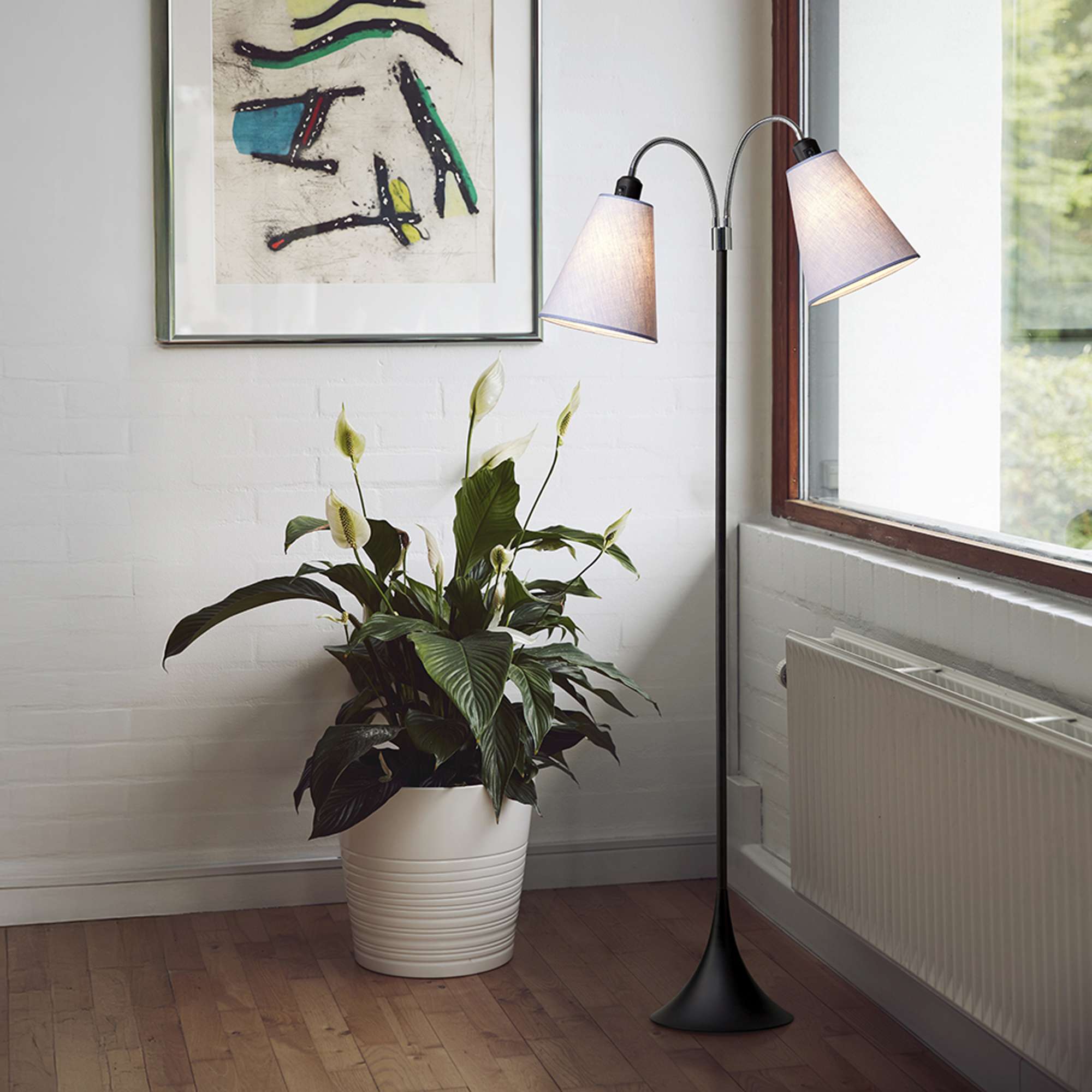 Fodgænger Gulvlampe Sort m/lavendel lampeskærme