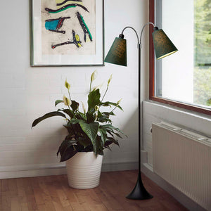 Fodgænger Gulvlampe Sort m/skovgrønne lampeskærme
