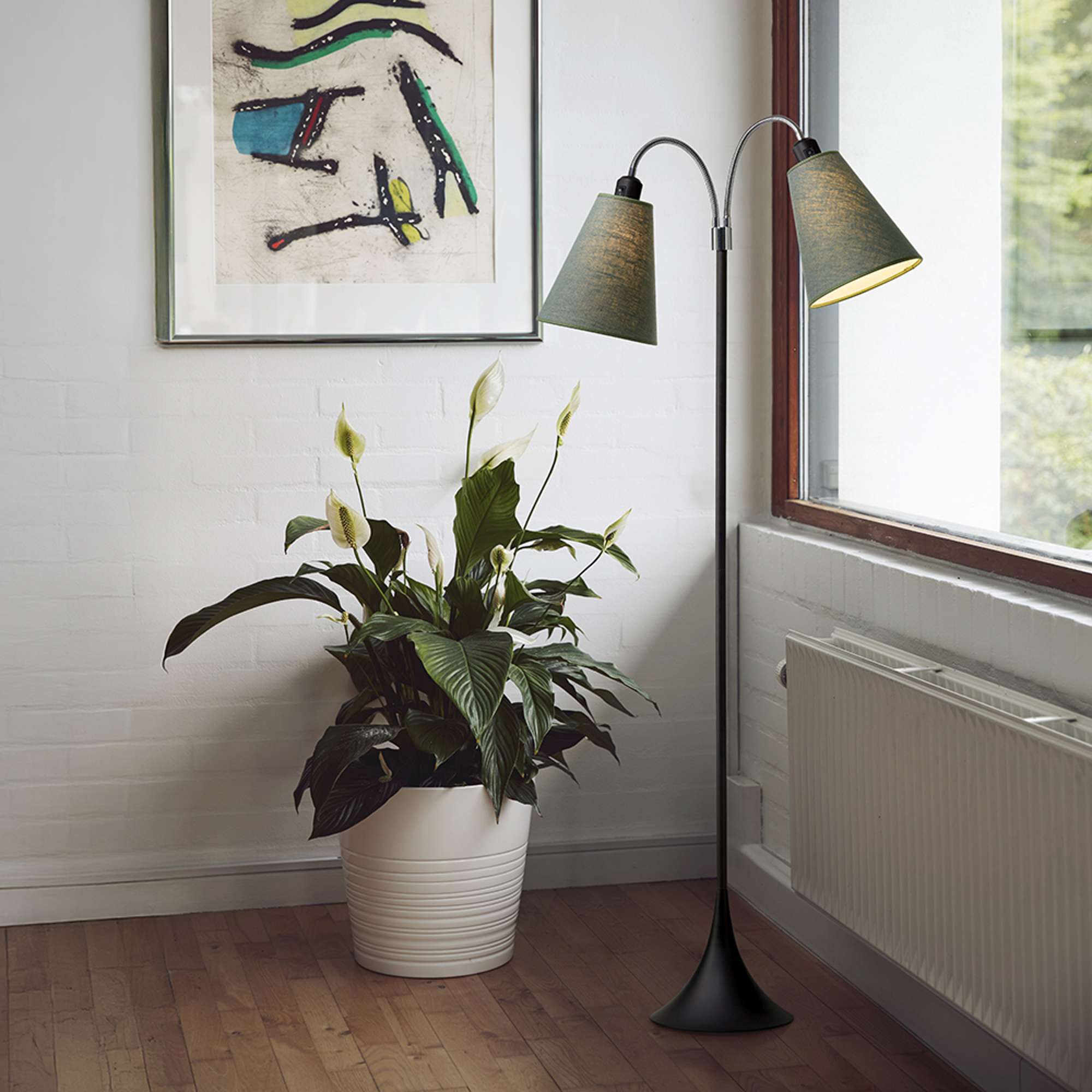 Fodgænger Gulvlampe Sort m/vintergrønne lampeskærme
