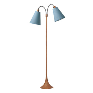 Fodgænger Gulvlampe Trælook m/støvet blå lampeskærme