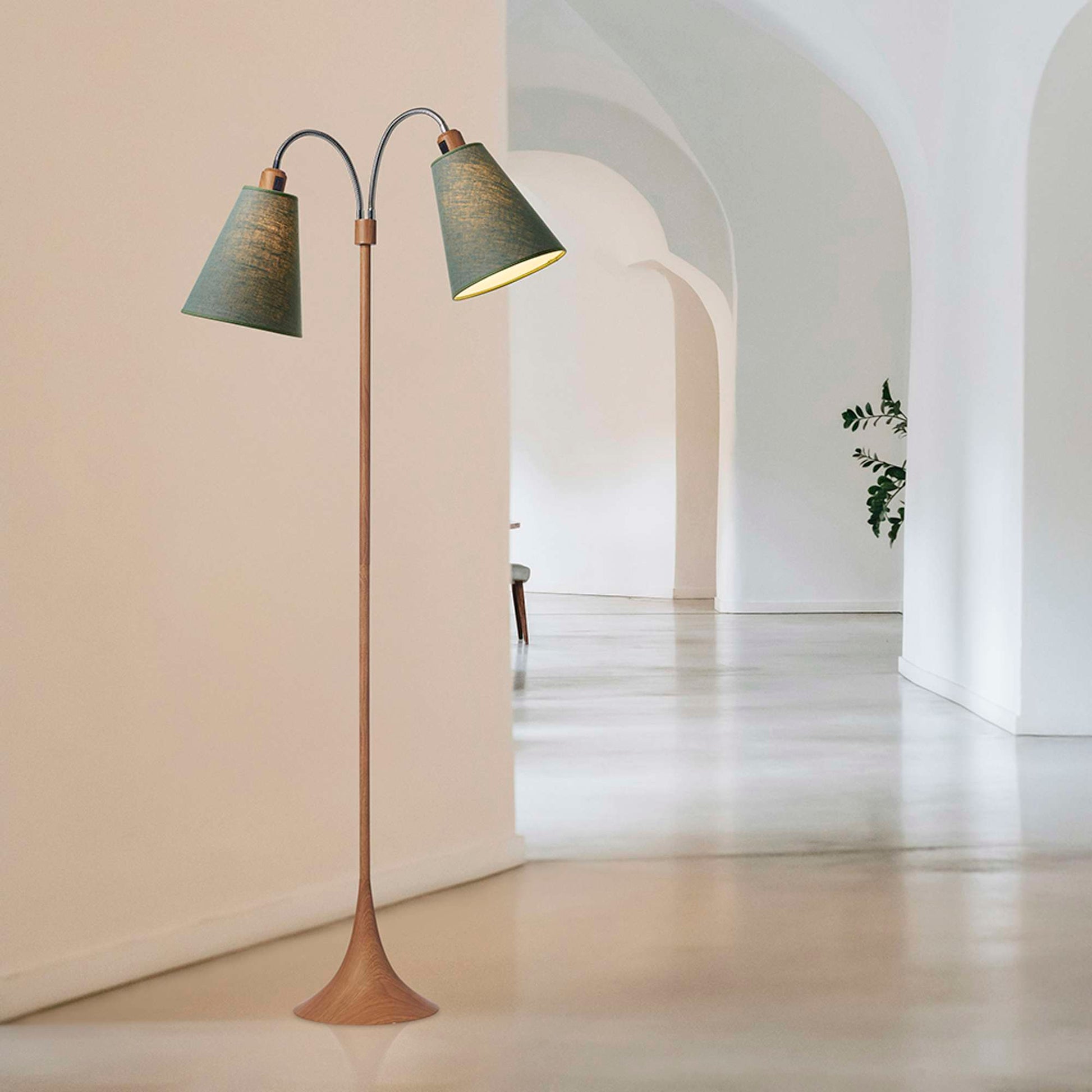 Fodgænger Gulvlampe Trælook m/vintergrønne lampeskærme