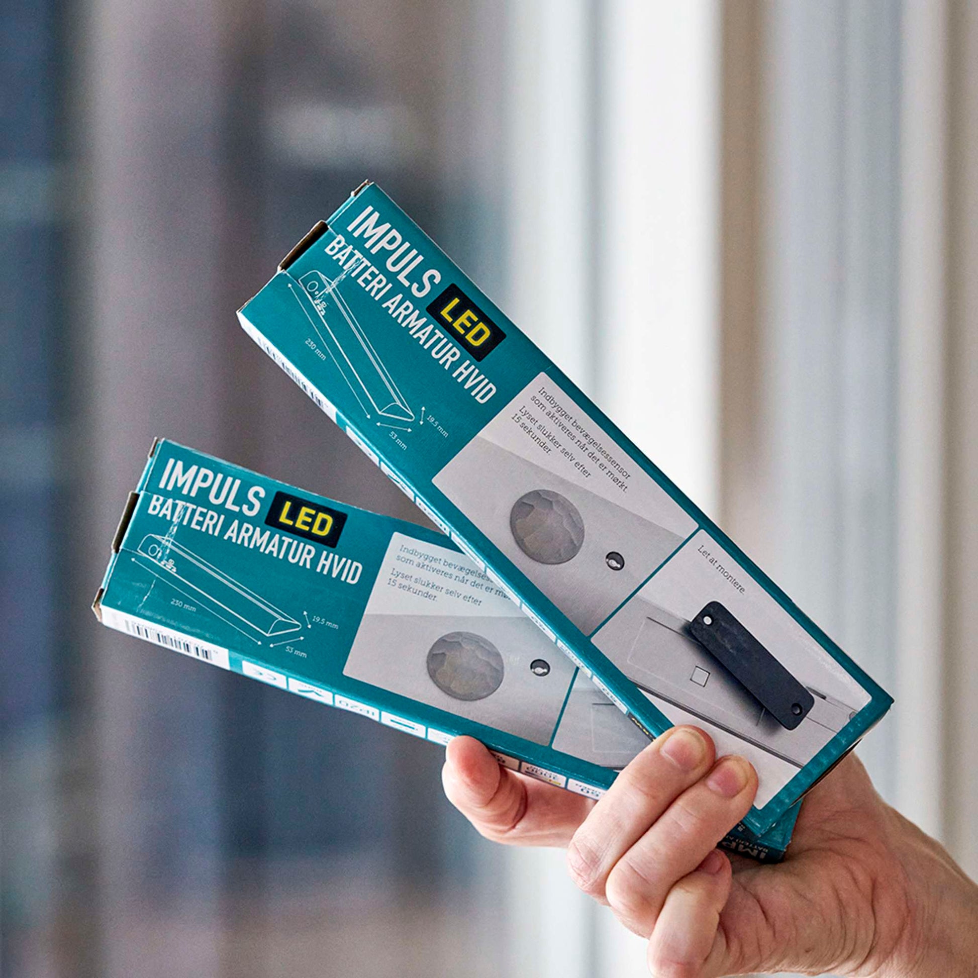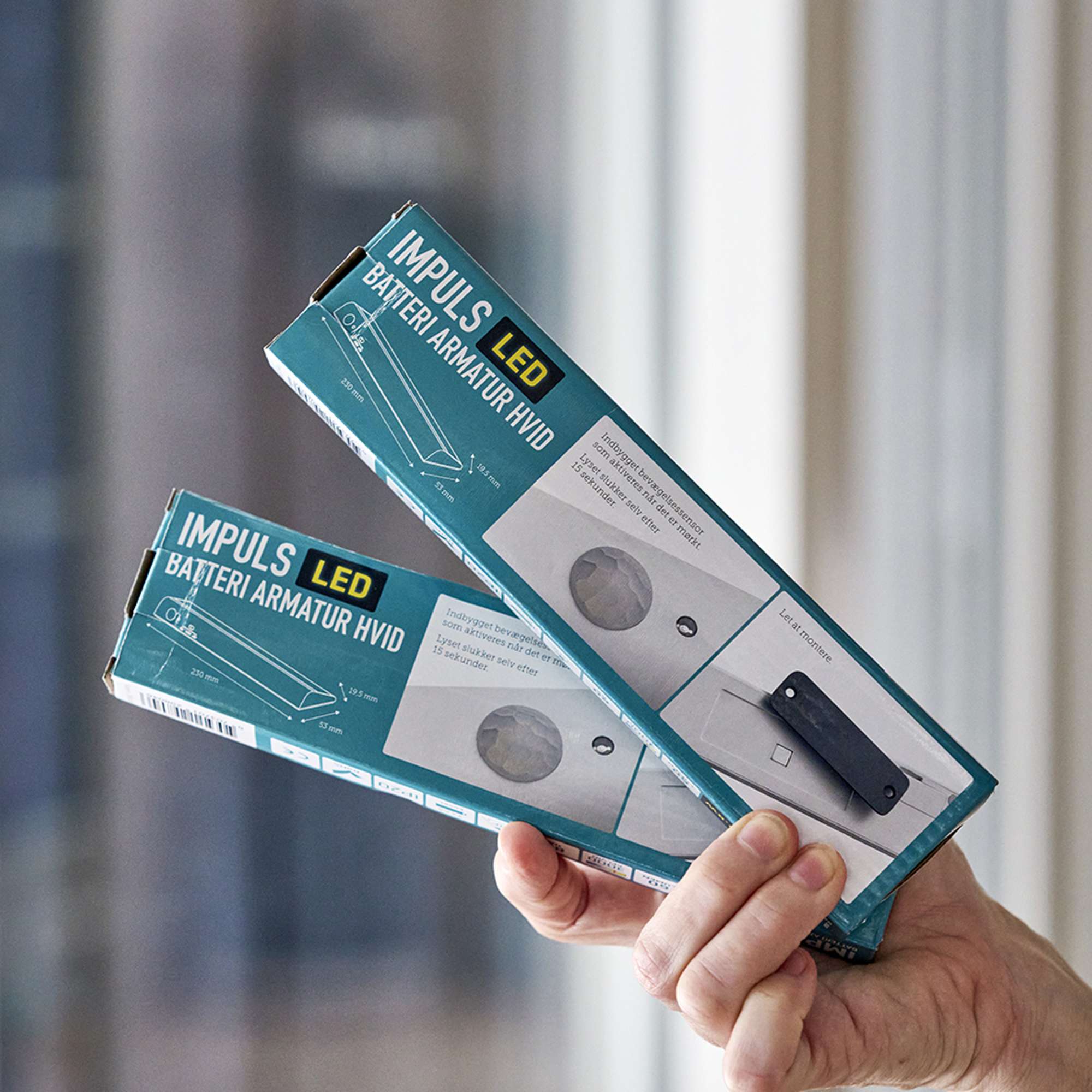 Impuls Batteriarmaturet drives af 3xAA batterier, hvilket gør installationen enkel og fleksibel. Du kan nemt montere lampen, hvor du ønsker, uden behov for ledninger. Den praktiske tænd/sluk-funktion samt bevægelsessensoren gør det til en brugervenlig løsning for alle husstande.