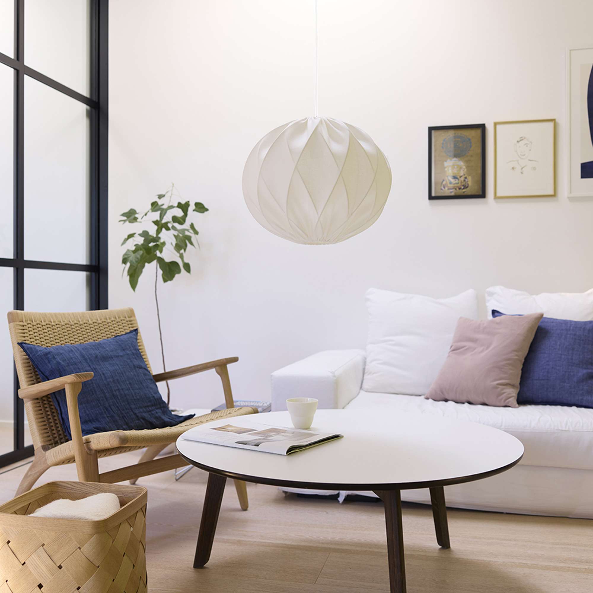 Jasmin Pendel Ø40 cm – hvid (hvid stofledning)