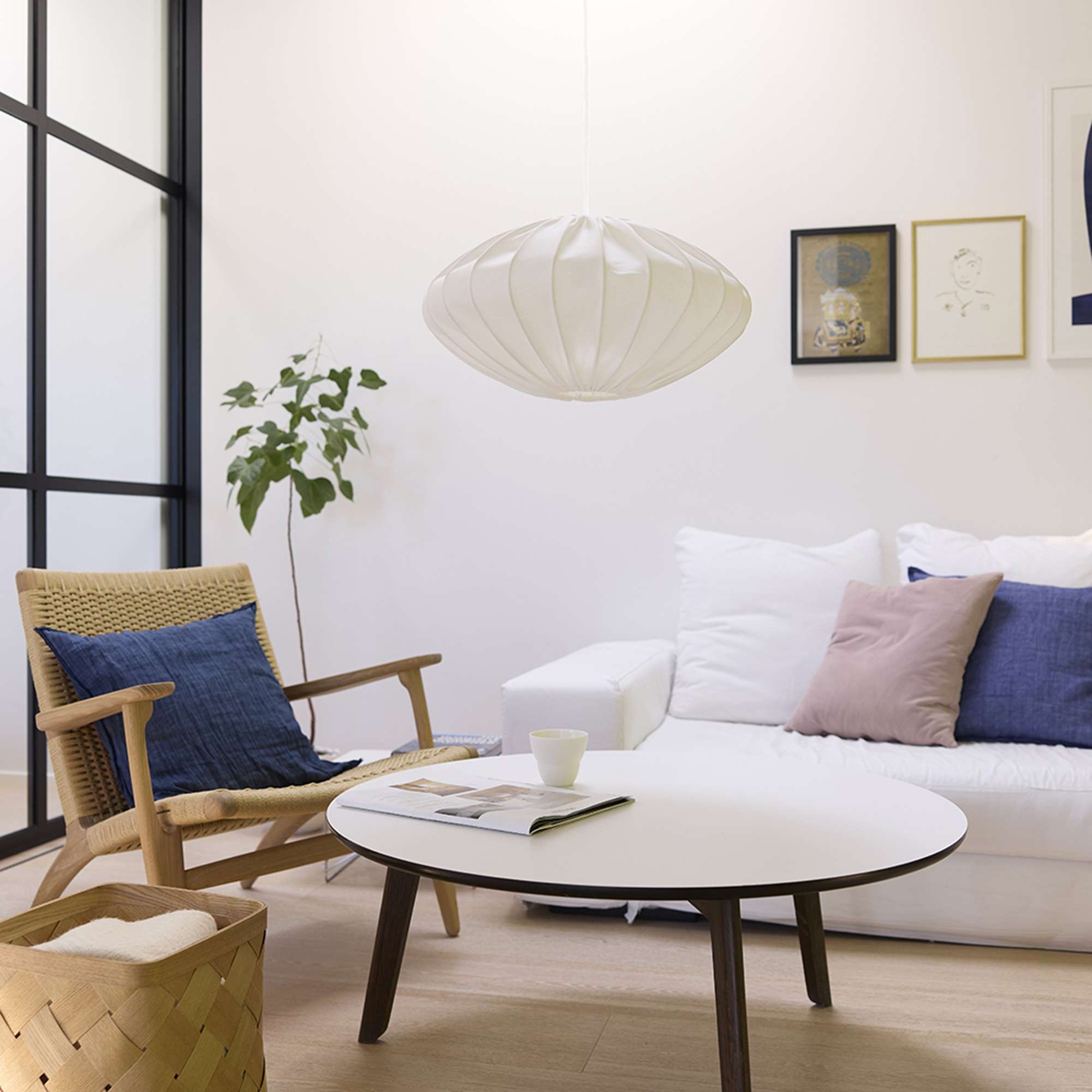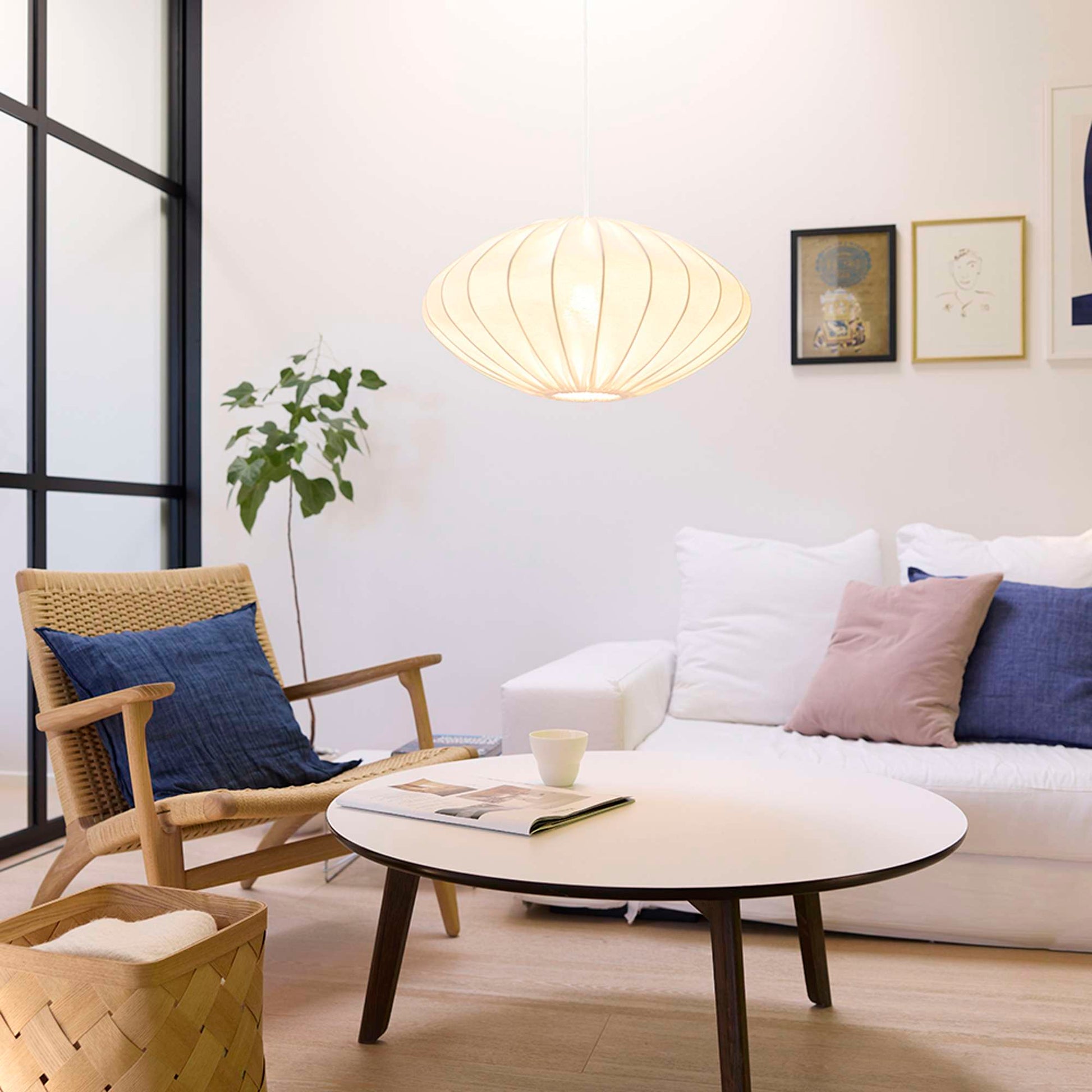 Jasmin Pendel Ø50 cm – hvid (hvid stofledning)