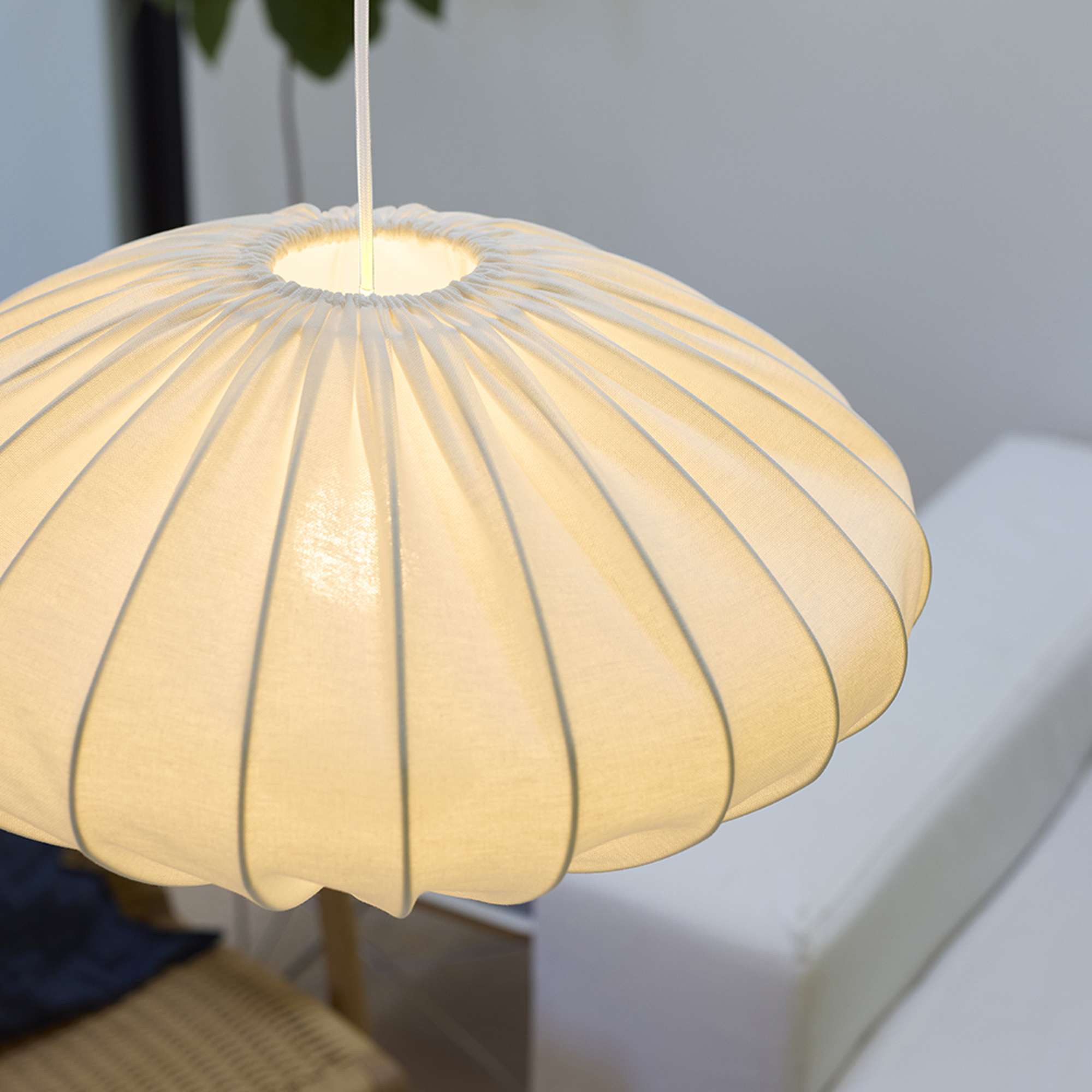 Jasmin Stofpendel Ø50 cm i hvid med hvid stofledning er den perfekte belysningsløsning til dit hjem. Denne stilrene lampe kombinerer et elegant design med funktionalitet og skaber en varm atmosfære i ethvert rum. Med en højde på 26 cm og en diameter på 50 cm passer den ideelt over spisebordet, i stuen eller i entréen, hvor den vil tiltrække opmærksomhed.
