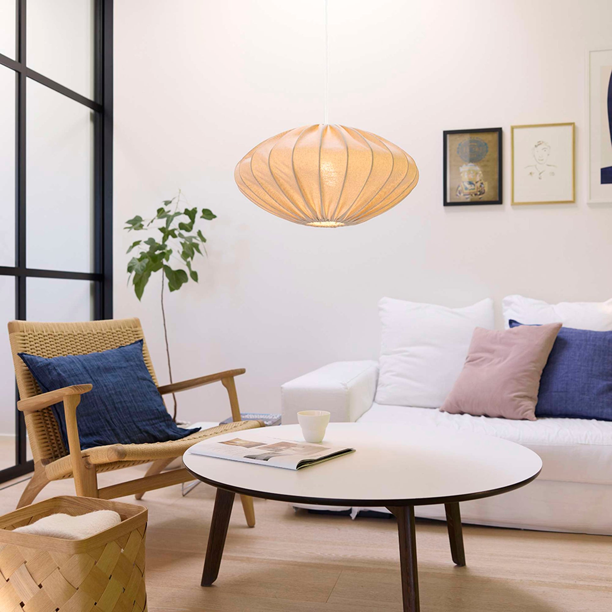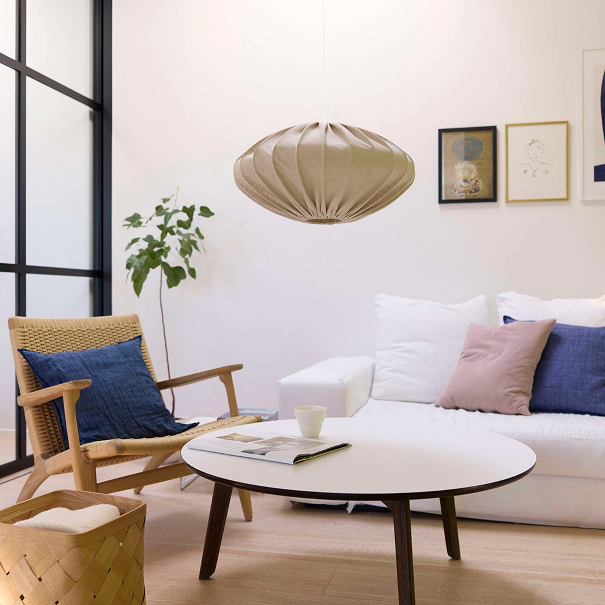 Jasmin Pendel Ø50 cm – lys sand (hvid stofledning)