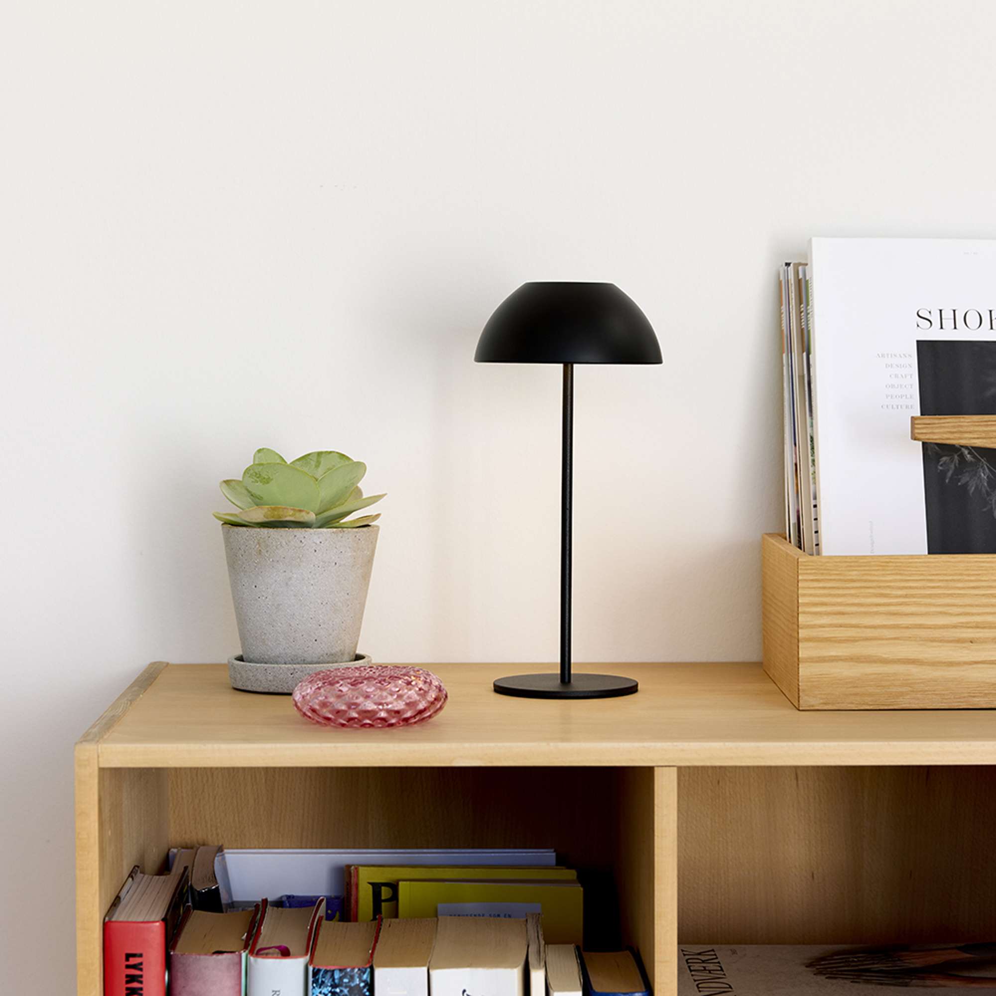 Luna Trådløs Bordlampe fra NIELSEN LIGHT er den perfekte løsning til dig, der ønsker stilfuld og funktionel belysning. Med sit elegante design i sort metal passer lampen ind i ethvert hjem, uanset om det er i stuen, på terrassen eller i haven. Den kompakte størrelse med en bunddiameter på 10 cm og en højde på 28 cm gør den nem at placere, hvor som helst du ønsker et hyggeligt lys.