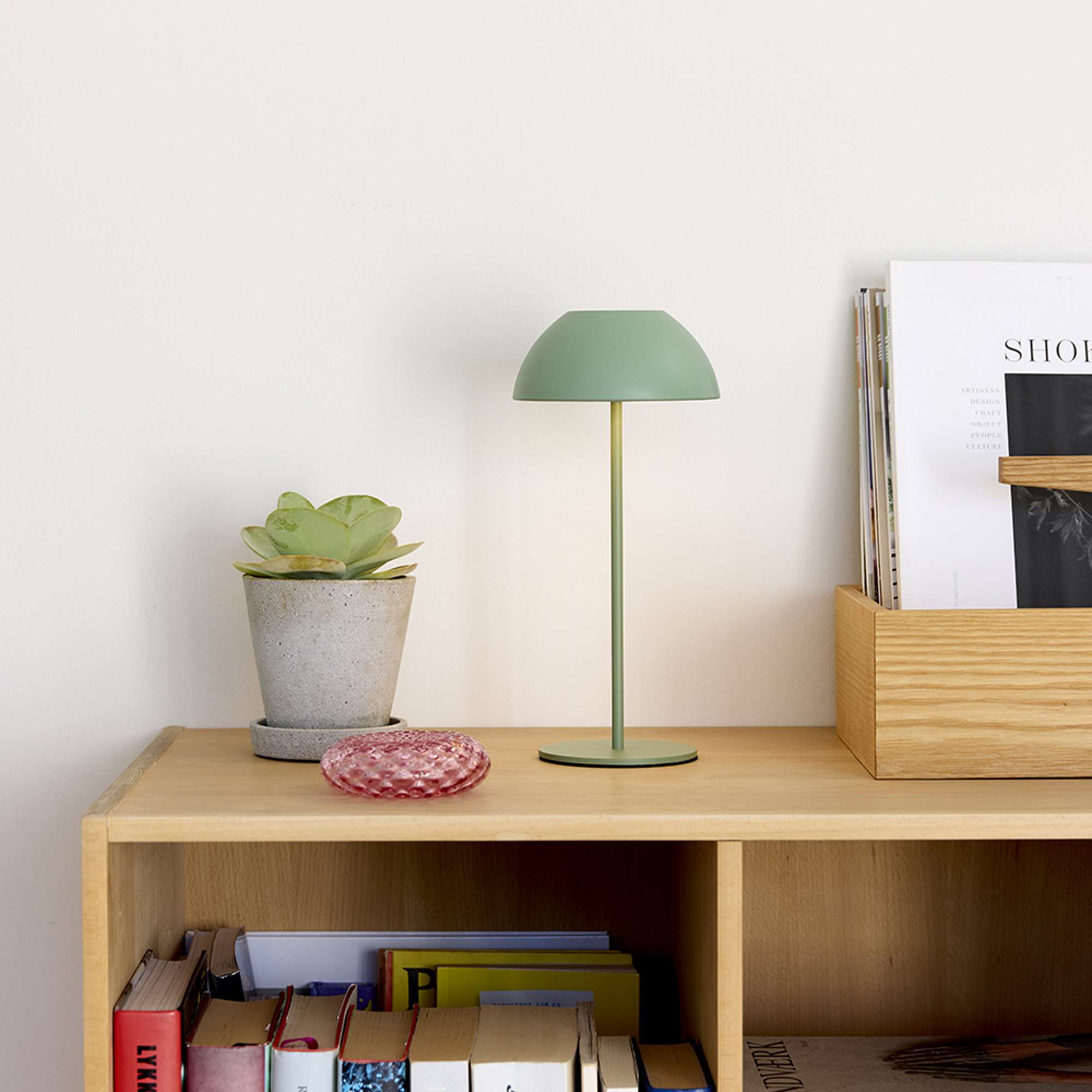Luna Trådløs Bordlampe i en smuk støvet grøn farve er den perfekte tilføjelse til dit hjem eller din have. Denne genopladelige lampe fra NIELSEN LIGHT kombinerer stil og funktionalitet, hvilket gør den ideel til både indendørs og udendørs brug. Med en højde på 28 cm og en bunddiameter på 10 cm, er den kompakt nok til at passe ind i ethvert rum, samtidig med at den tilføjer et elegant touch.