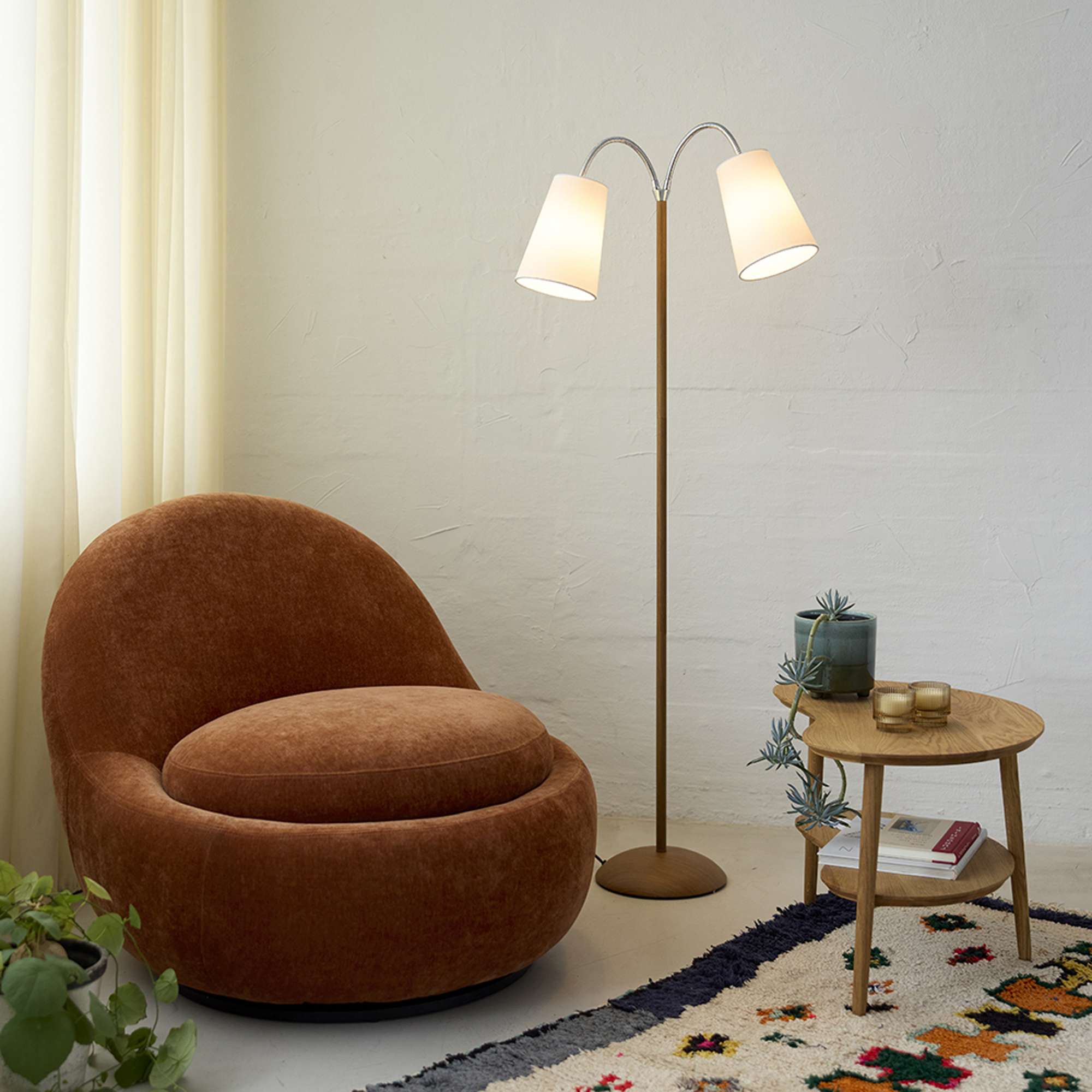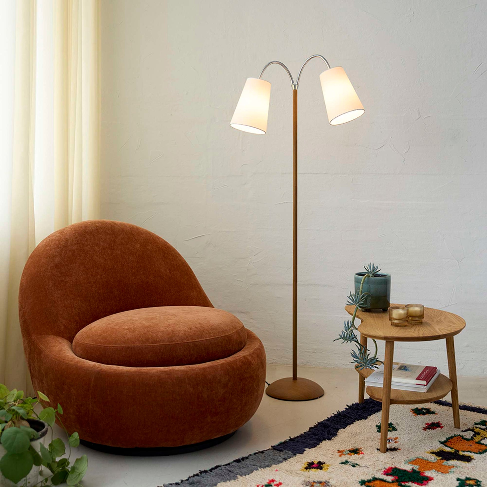 Tango Gulvlampe Trælook – m/hvide lampeskærme
