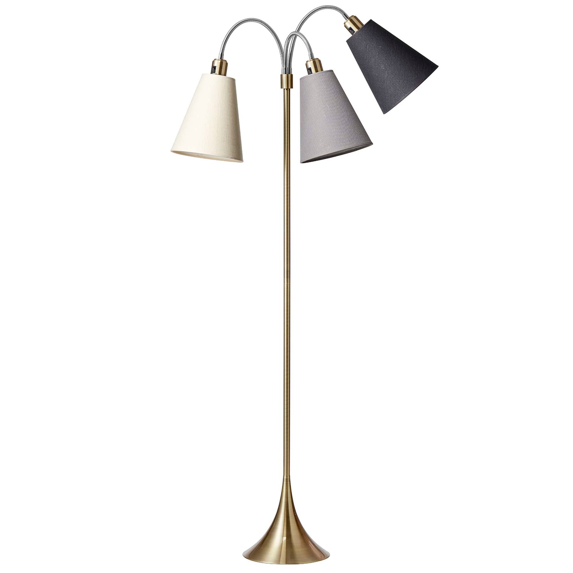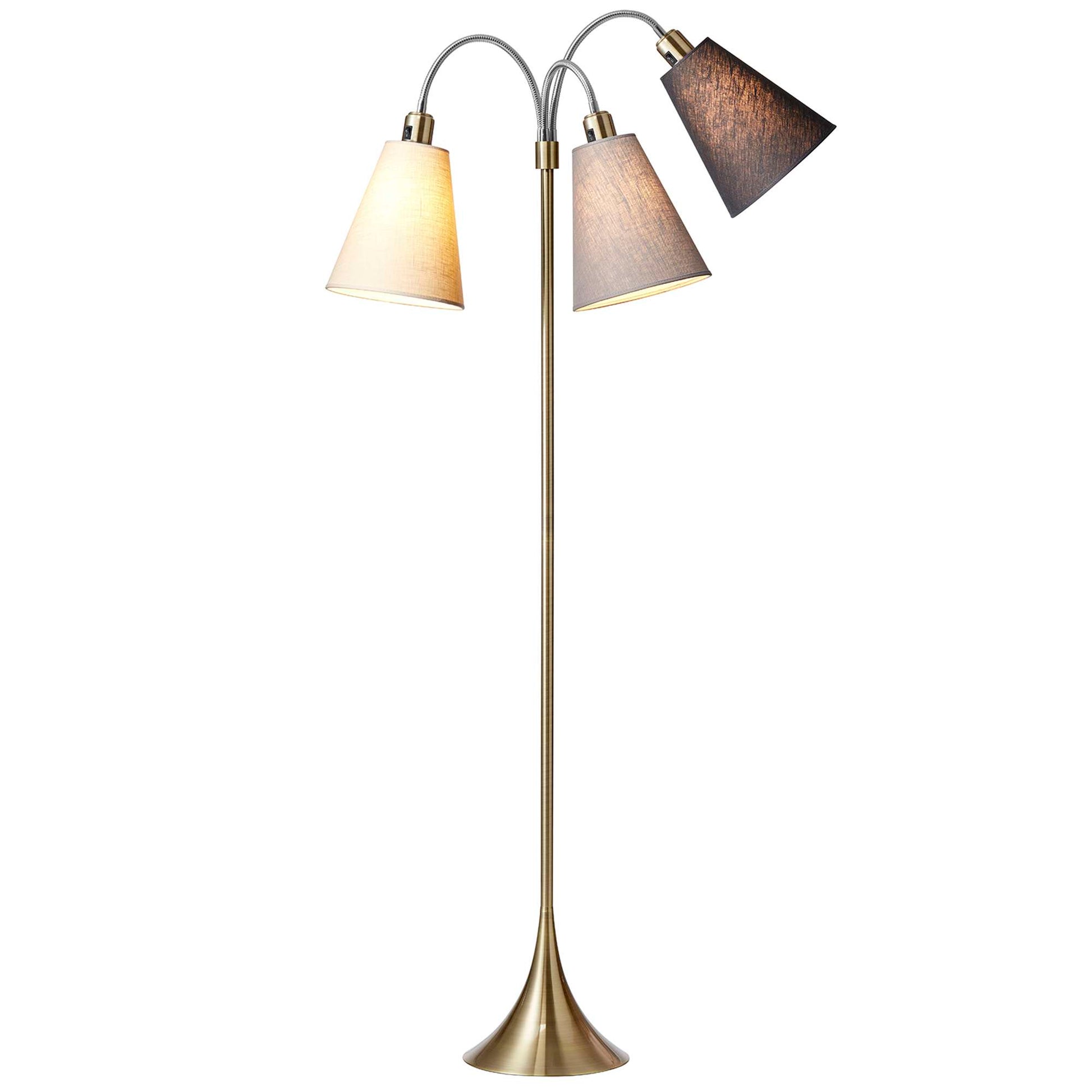 Trafik Gulvlampe Antik messing – m/creme, lysegrå og mørkegrå lampeskærme