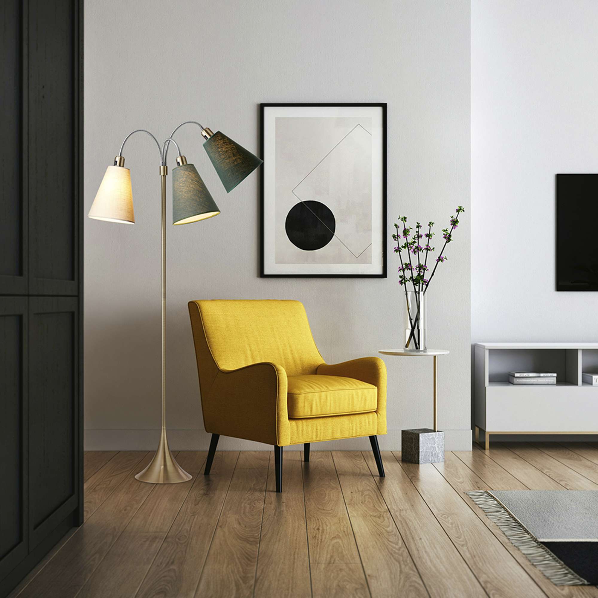 Hver lampe har en praktisk afbryder på hvert lampehoved, hvilket gør det nemt at tænde og slukke for lyset, uanset hvor du sidder. Den 210 cm lange sorte ledning giver dig fleksibilitet til at placere lampen, hvor den passer bedst ind i dit hjem. NIELSEN LIGHT er kendt for deres høje kvalitet og innovative design, hvilket gør denne gulvlampe til et pålideligt valg.