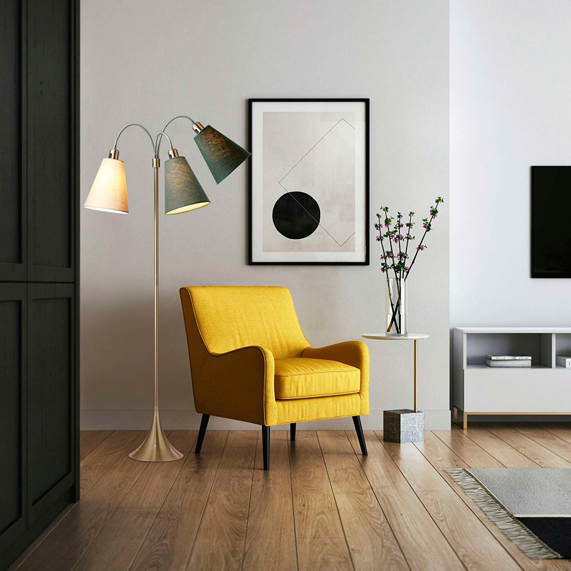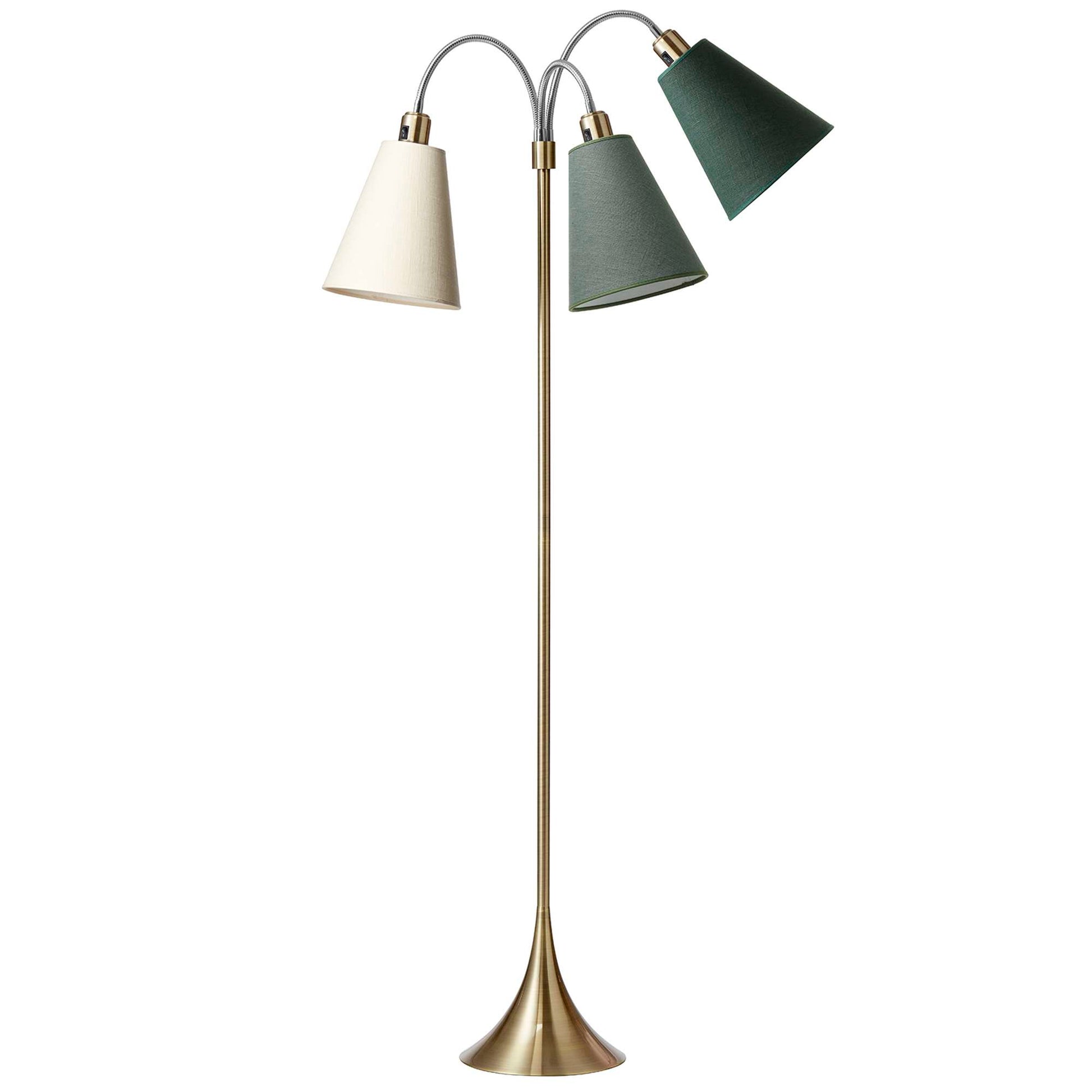 Trafik Gulvlampe Antik messing – m/creme, vintergrøn og skovgrøn lampeskærme