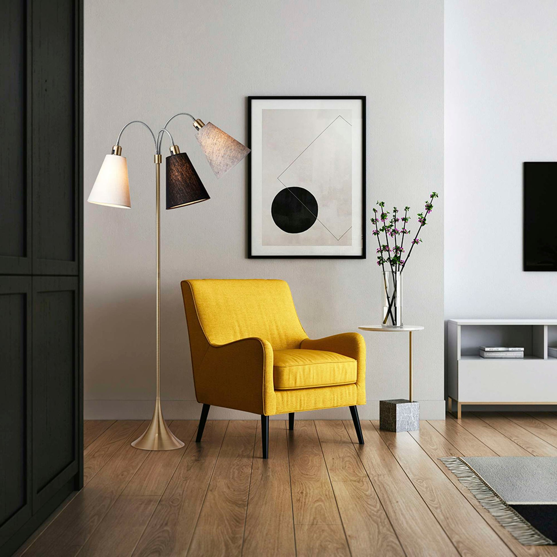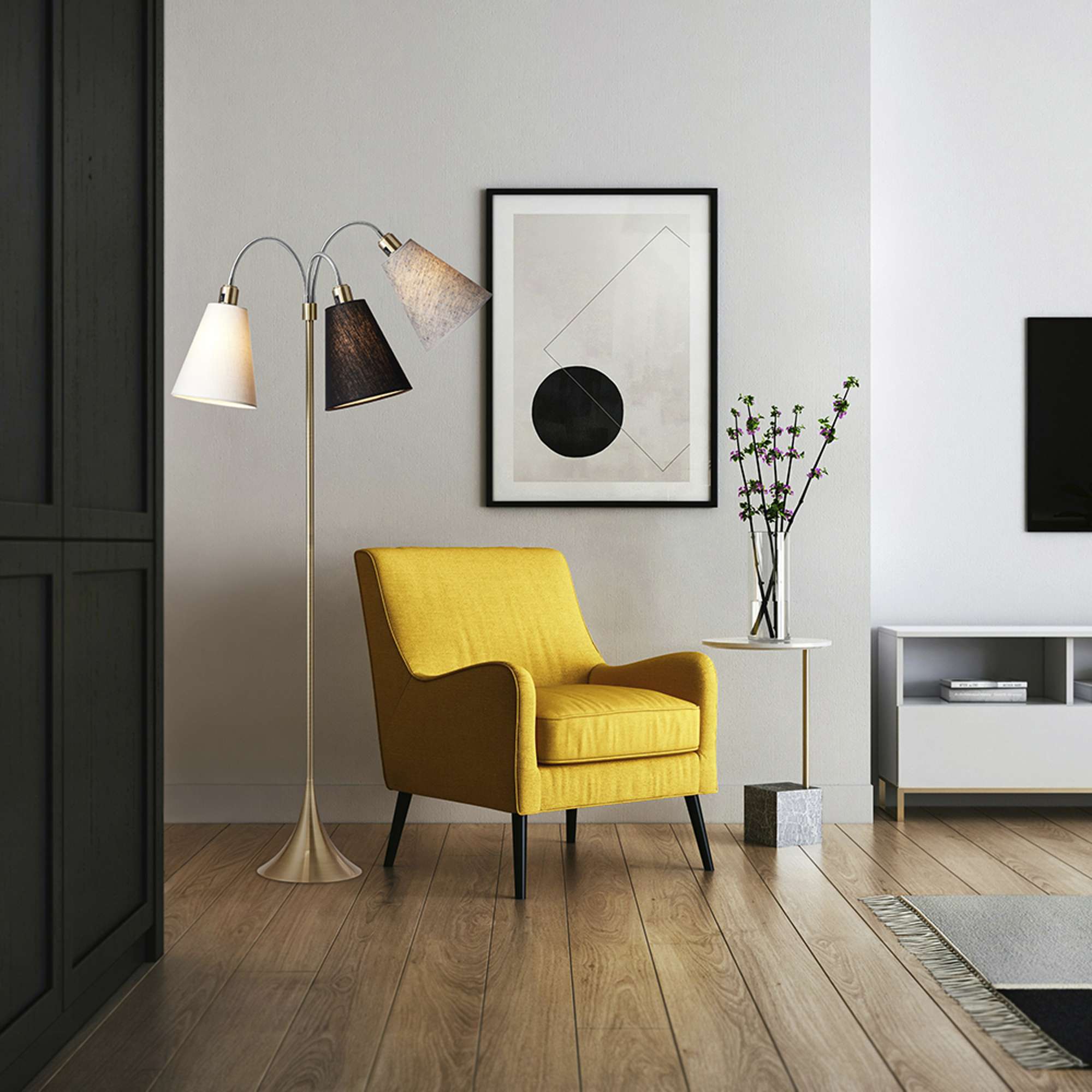 Giv dit hjem et stilfuldt løft med Trafik Gulvlampe i antik messing, der kombinerer elegance med funktionalitet. Denne lampe, der måler 135 cm i højden og 25 cm i bredden, er designet til at passe perfekt ind i enhver stue eller læsehjørne. Med sine tre smukke lampeskærme i hvid, sort og sort nistret, skaber den en varm og indbydende atmosfære.