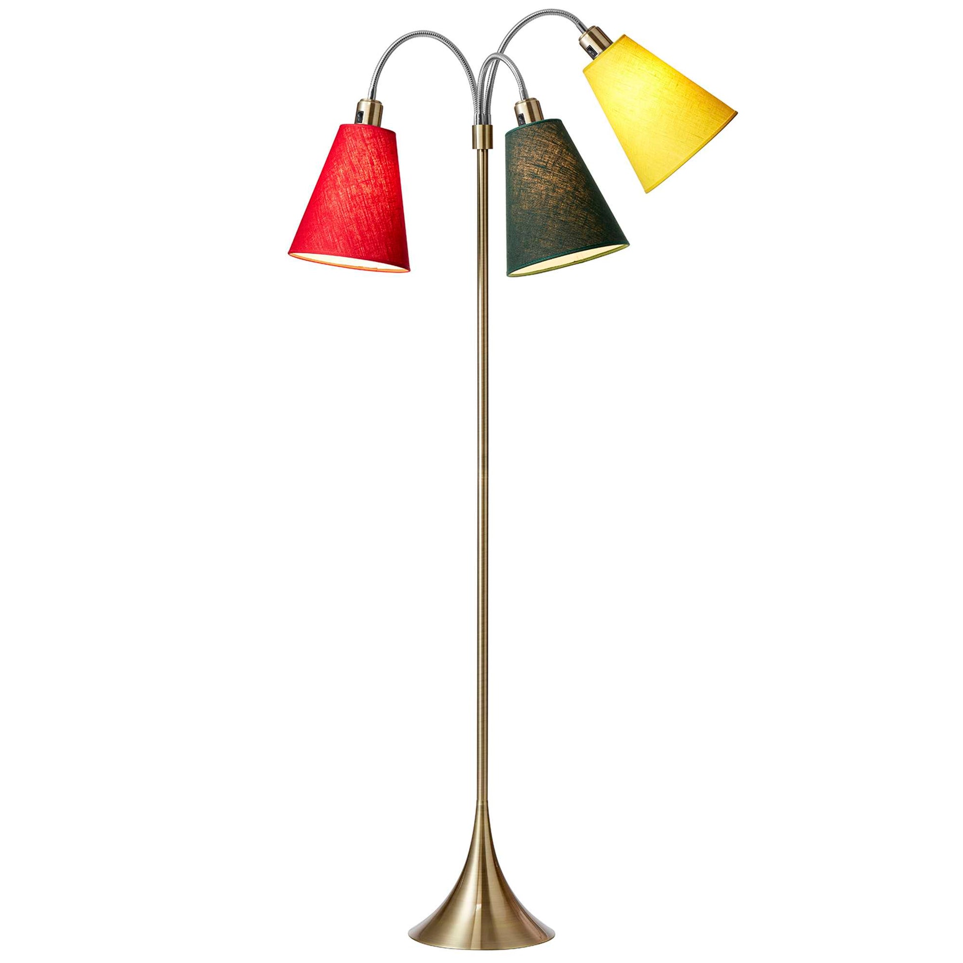 Trafik Gulvlampe Antik messing – m/rød, skovgrøn og gul lampeskærme