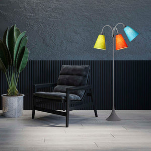 Trafik Gulvlampe Grå – m/limegrøn, orange og turkis lampeskærme