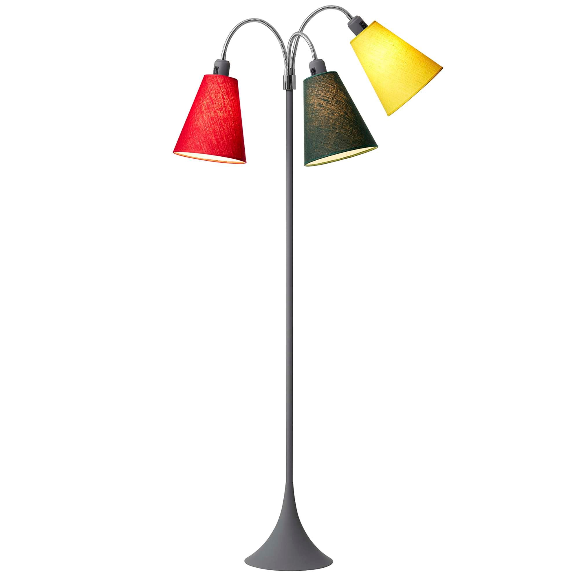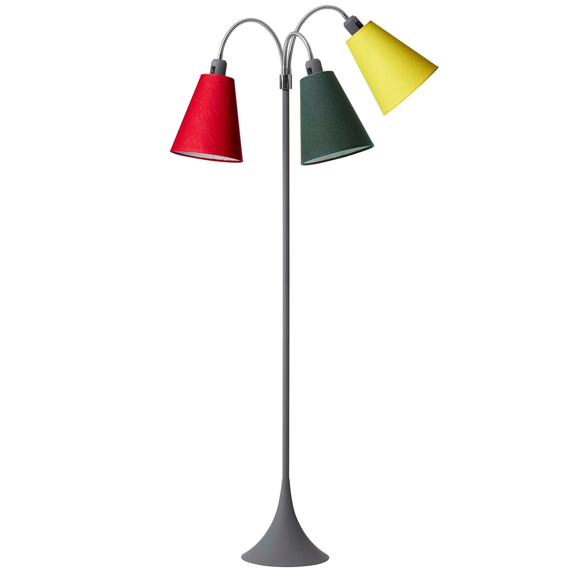 Trafik Gulvlampe Grå – m/rød, skovgrøn og gul lampeskærme