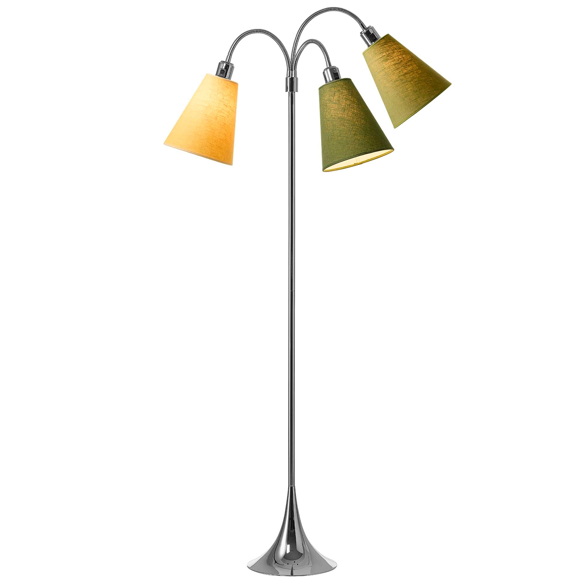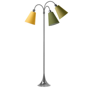 Trafik Gulvlampe Krom – m/ananasgul, mørk armygrøn og lys armygrøn lampeskærme