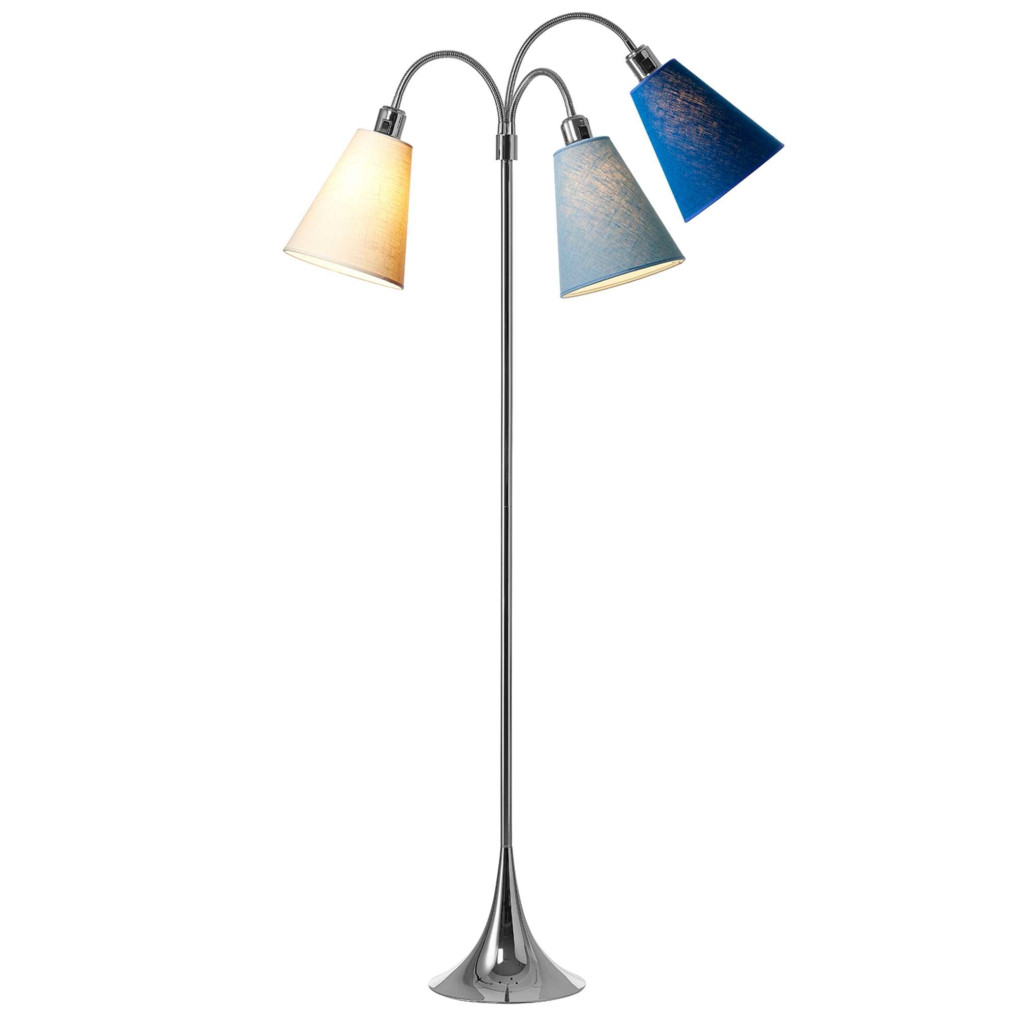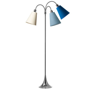 Trafik Gulvlampe Krom – m/creme, støvet blå og havblå lampeskærme