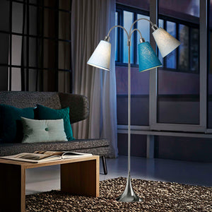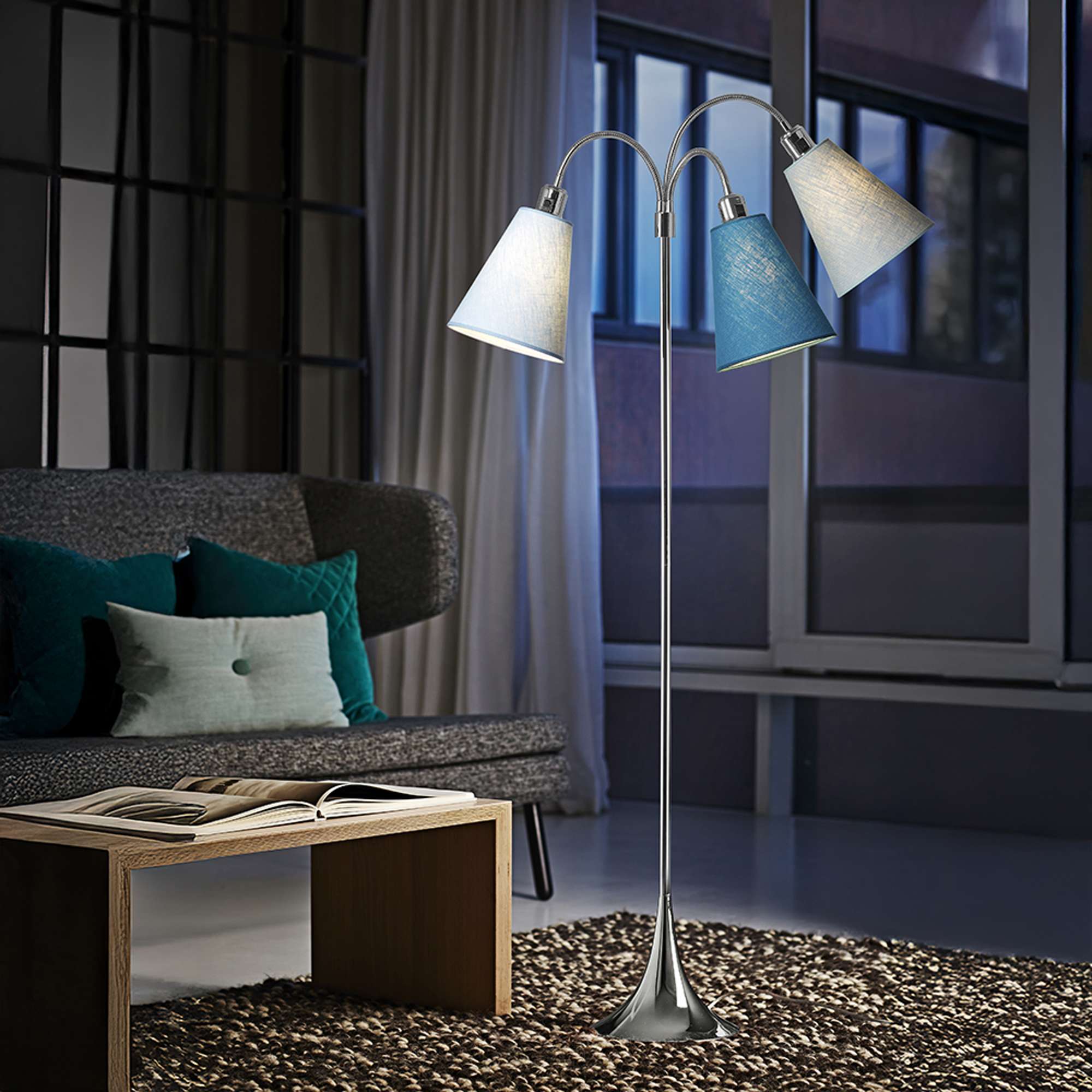 Trafik Gulvlampe Krom – m/lyseblå, petroleum og turkisblå lampeskærme
