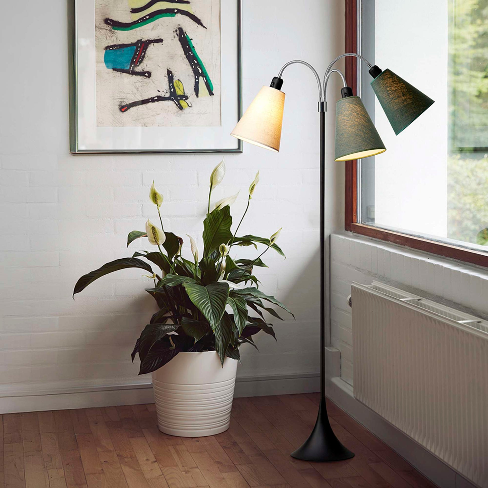 Trafik Gulvlampe Sort – m/creme, vintergrøn og skovgrøn lampeskærme