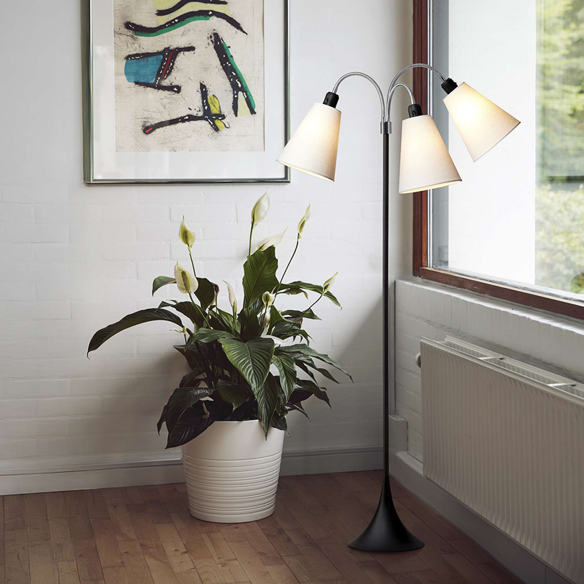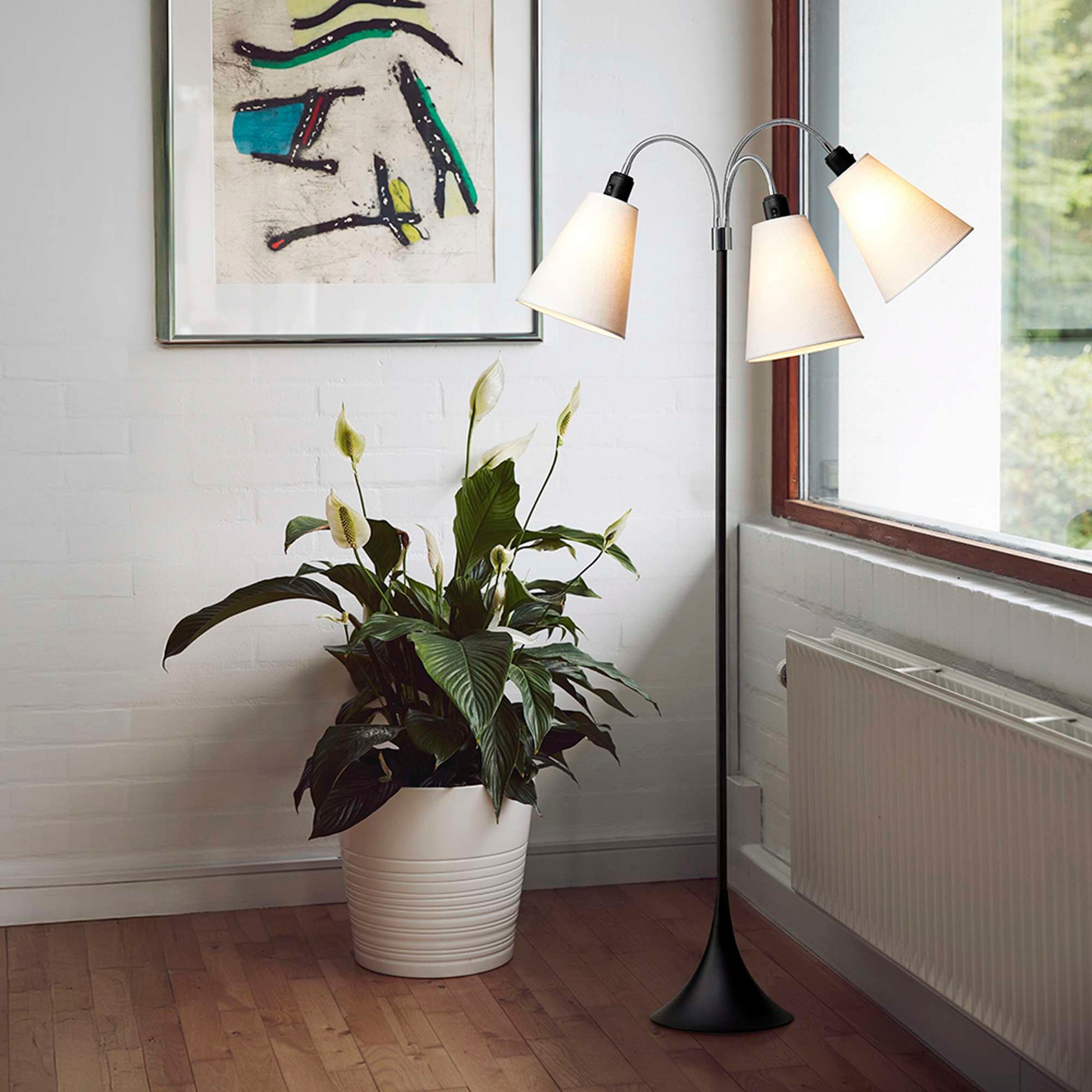 Trafik Gulvlampe Sort – m/hvide lampeskærme