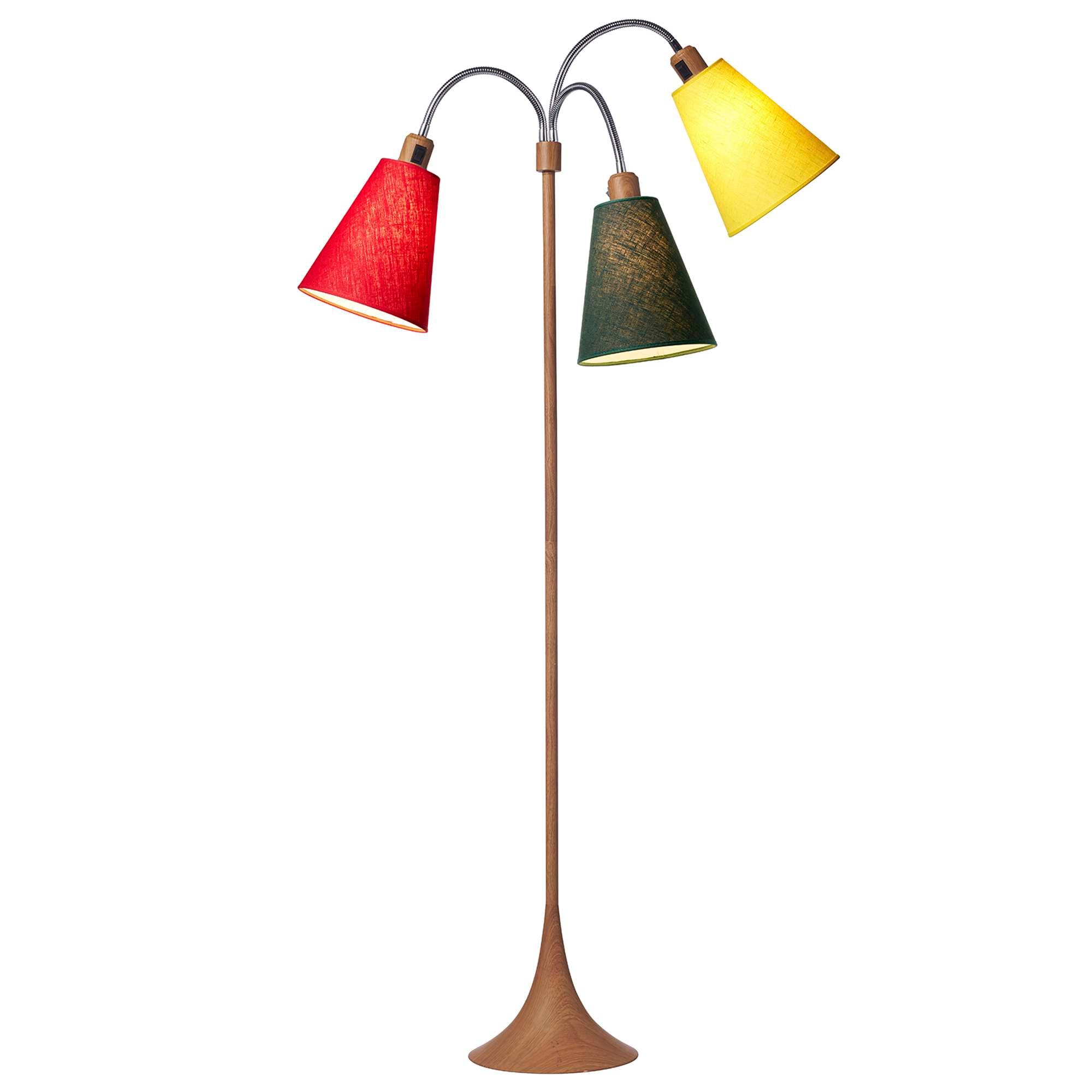 Trafik Gulvlampe Trælook – m/rød, skovgrøn og gul lampeskærme